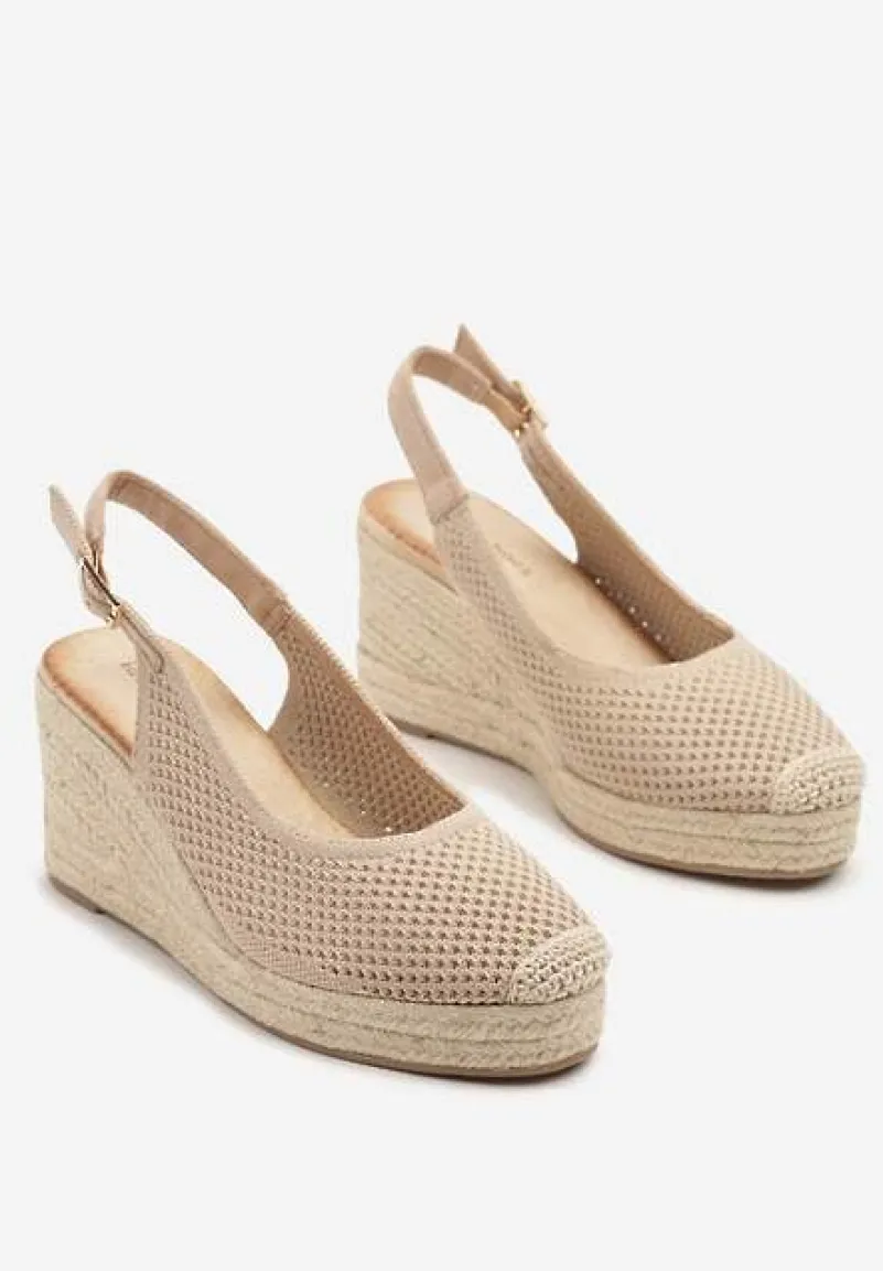Sandały z Siateczkową Cholewką na Plecionym Koturnie Vonevia – żurowy design zapewnia lekkość, a koturn z juty styl z nutką boho