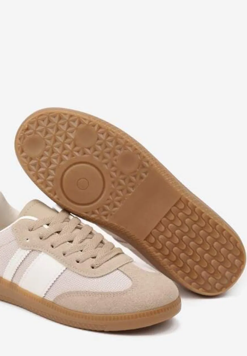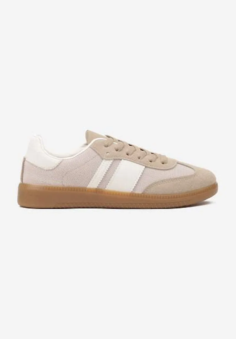 Oto Sneakersy na Kauczukowej Podeszwie Ozdobione Paskami Emidi, które doskonale wpisują się w aktualne trendy modowe. Te modne sneakersy z płaskim obcasem, zaopatrzone w sznurowanie, to prawdziwy must-have dla odważnych fashionistek. Ich zaokrąglony nosek i przyciągające wzrok paski dodają każdej stylizacji nowoczesnego charakteru. Świetnie sprawdzą się w codziennym outficie z jeansami i t-shirtem. Gotowa, by świat podziwiał Twój styl?