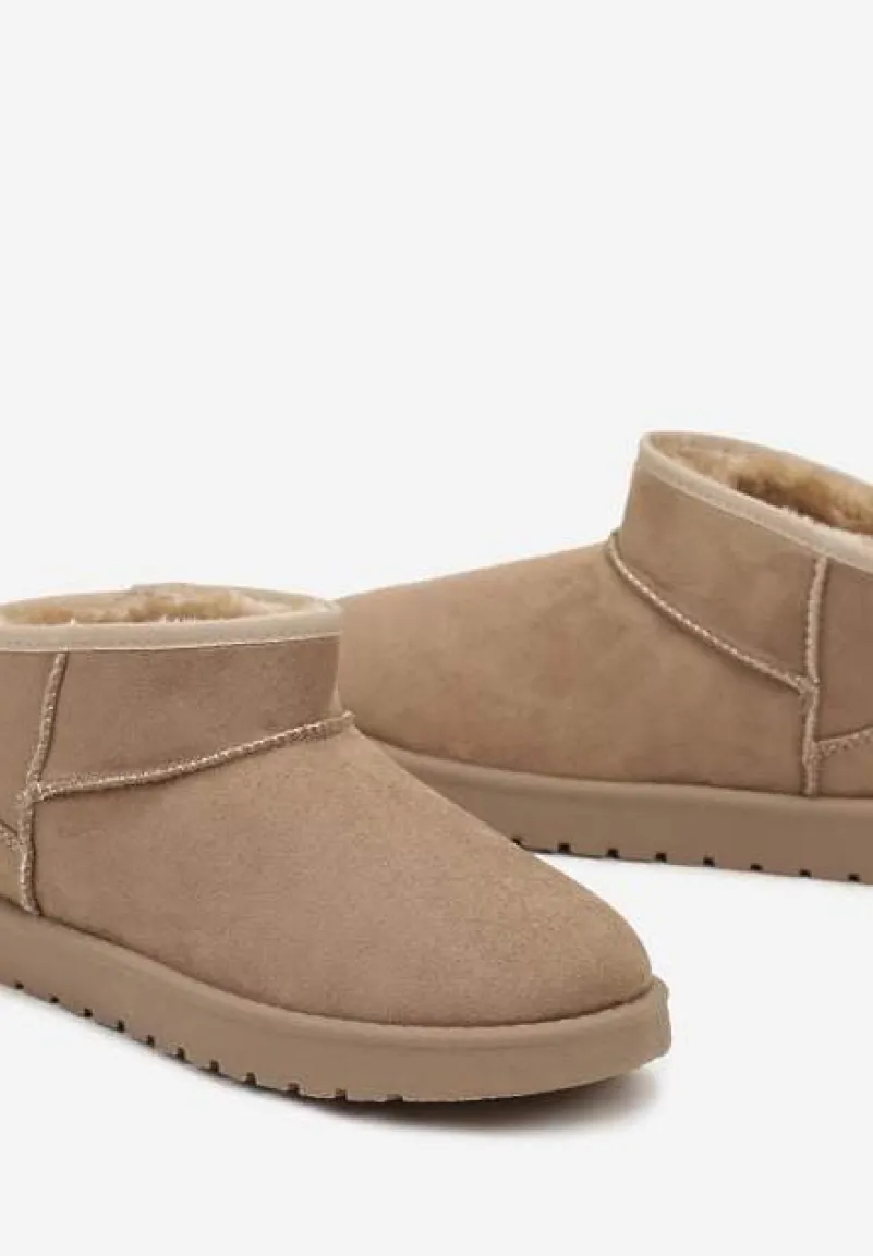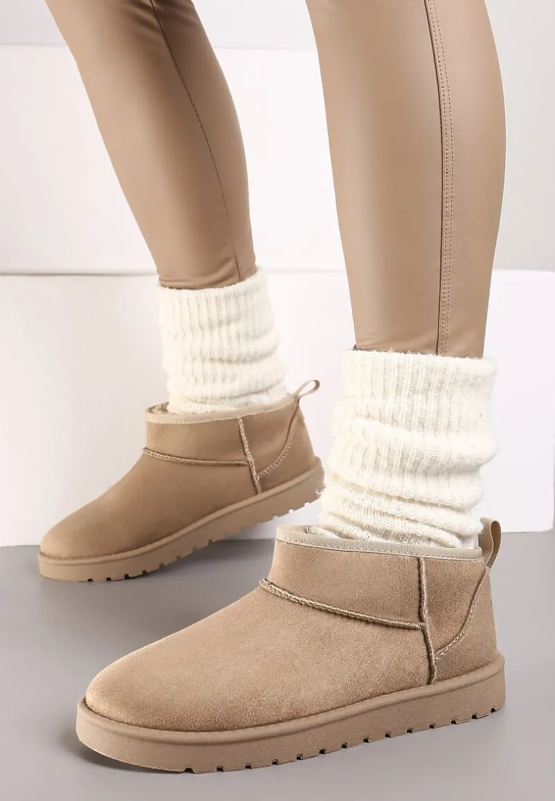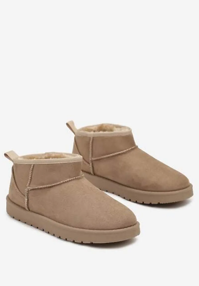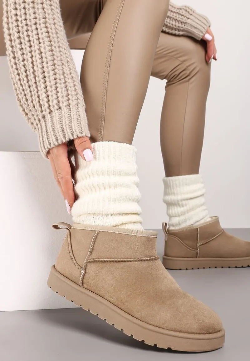 Śniegowce Antelaia na bardzo grubej podeszwie z protektorem. Nosek okrągły. Z krótką cholewką sięgającą delikatnie za kostkę. Nosek zaokrąglony. Urozmaicone przeszyciami w kolorze cholewki. Wykonane z ekozamszu, mocno ocieplane od środka materiałem imitującym futerko. Polecamy zakup rozmiaru o 1 większego. Najlepiej wyglądają w towarzystwie modnej, metalicznej kurtki i dopasowanych spodni.