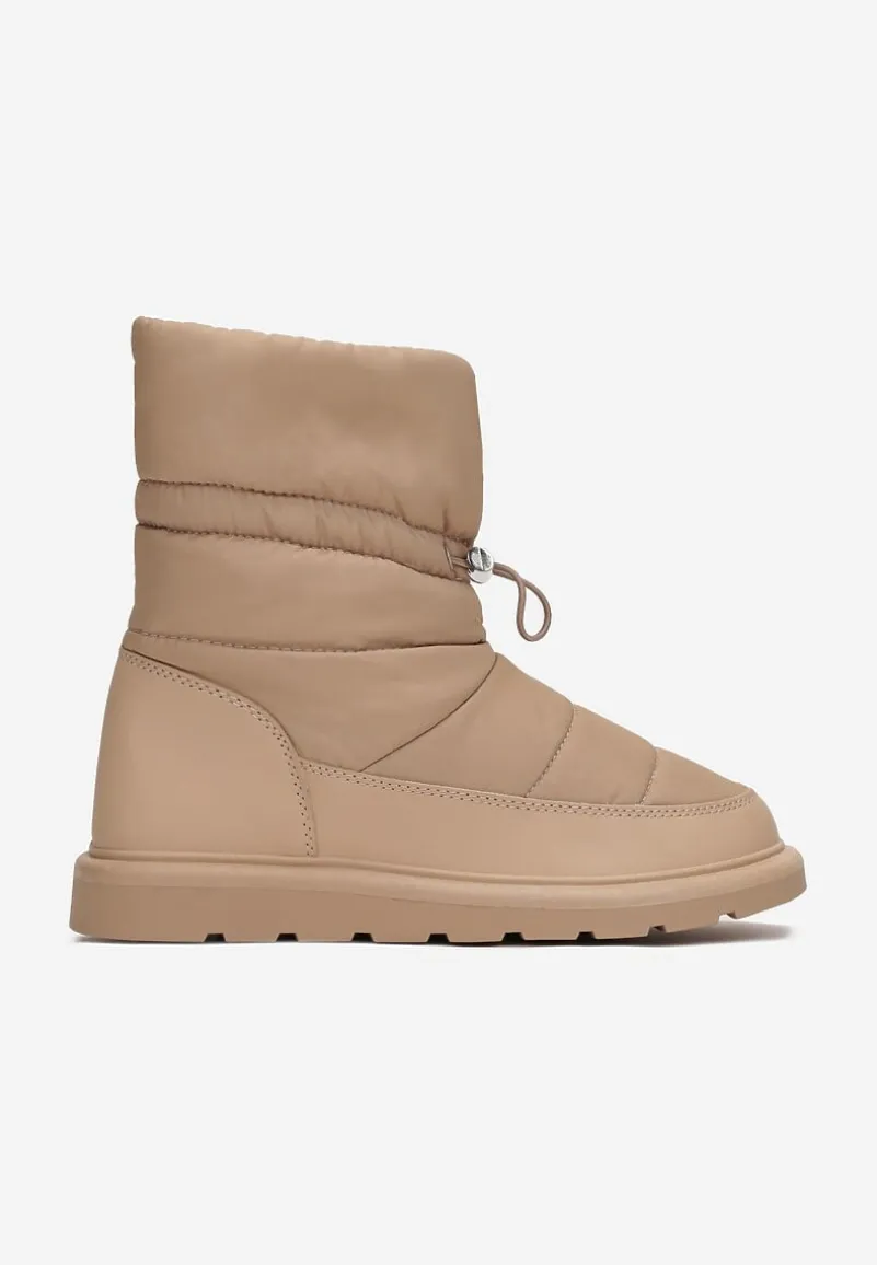Śniegowce Leonard lekko ocieplone kocem obuwniczym. Osadzone na grubej podeszwie. Model wykonano z materiału ozdobionego pikowaniem oraz ekoskóry. Wysoką za kostkę cholewkę można ściągnąć za pomocą gumki ze stoperem. Buty są wsuwane. Okrągły, klasyczny nosek. Całość ma modny, jednolity kolor. Szukasz ciepłych zimowych butów w casualowym stylu? Śniegowce Leonard możesz bez problemu łączyć z każdym codziennym outfitem! Pasuje do kurtki parki, jeansów slim fit i miejskiej torby.