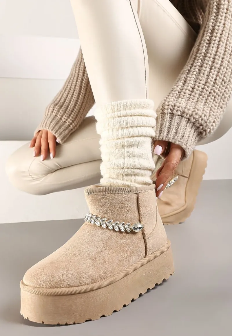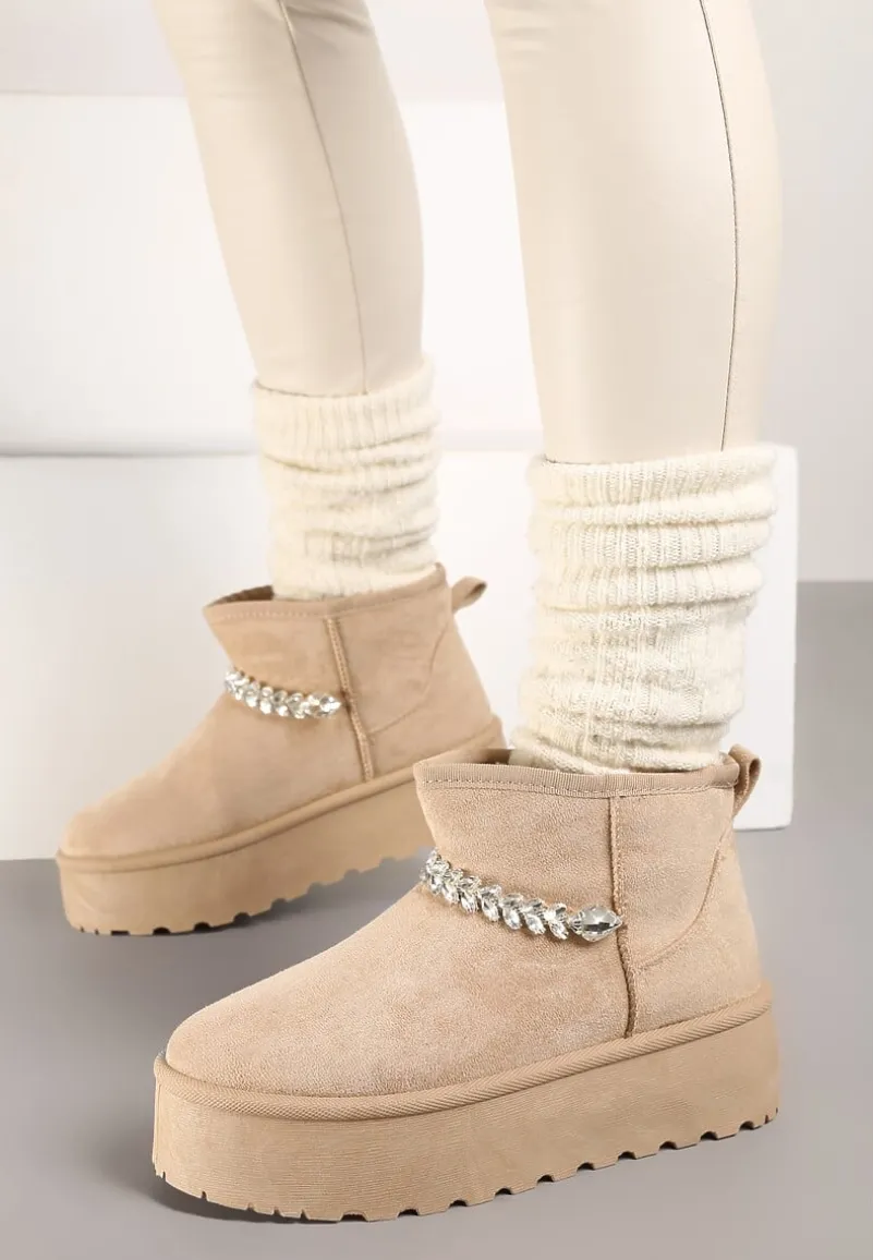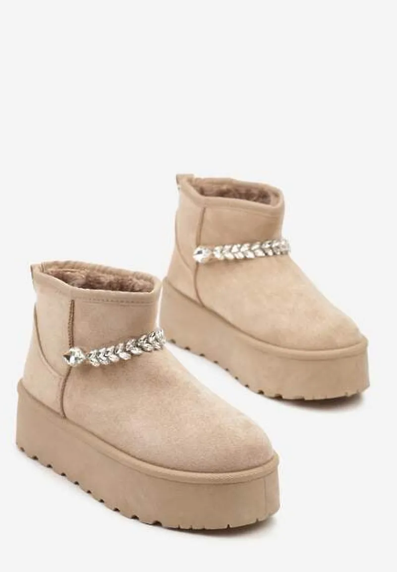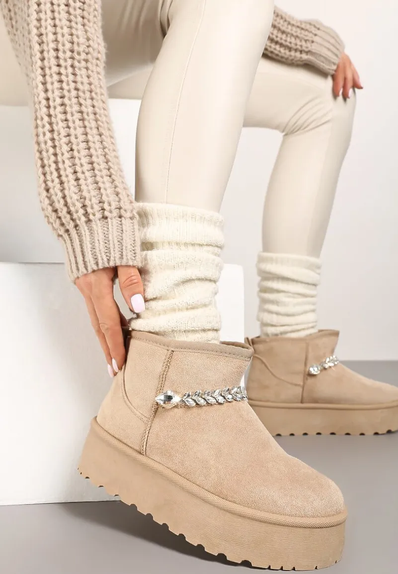 Śniegowce Ninnalith to must-have w szafir każdej kobiety, która nawet w zimowe dni pragnie wyglądać stylowo. Gruba podeszwa to gwarancja stylowego looku i komfortu noszenia. Mocno ocieplane wnętrze sprawdzi się w chłodniejsze dni, a ekozamsz doda elegancji. Subtelny, cyrkoniowy łańcuszek to kwintesencja szyku – dodaje charakteru i blasku. Śniegowce Ninnalith sprawdzą się idealnie w połączeniu z oversize’owym swetrem i jeansami na co dzień, albo z eleganckim, wełnianym płaszczem i dzianinową sukienka podczas wieczornych wyjść. Zaleca się zakup większego rozmiaru.