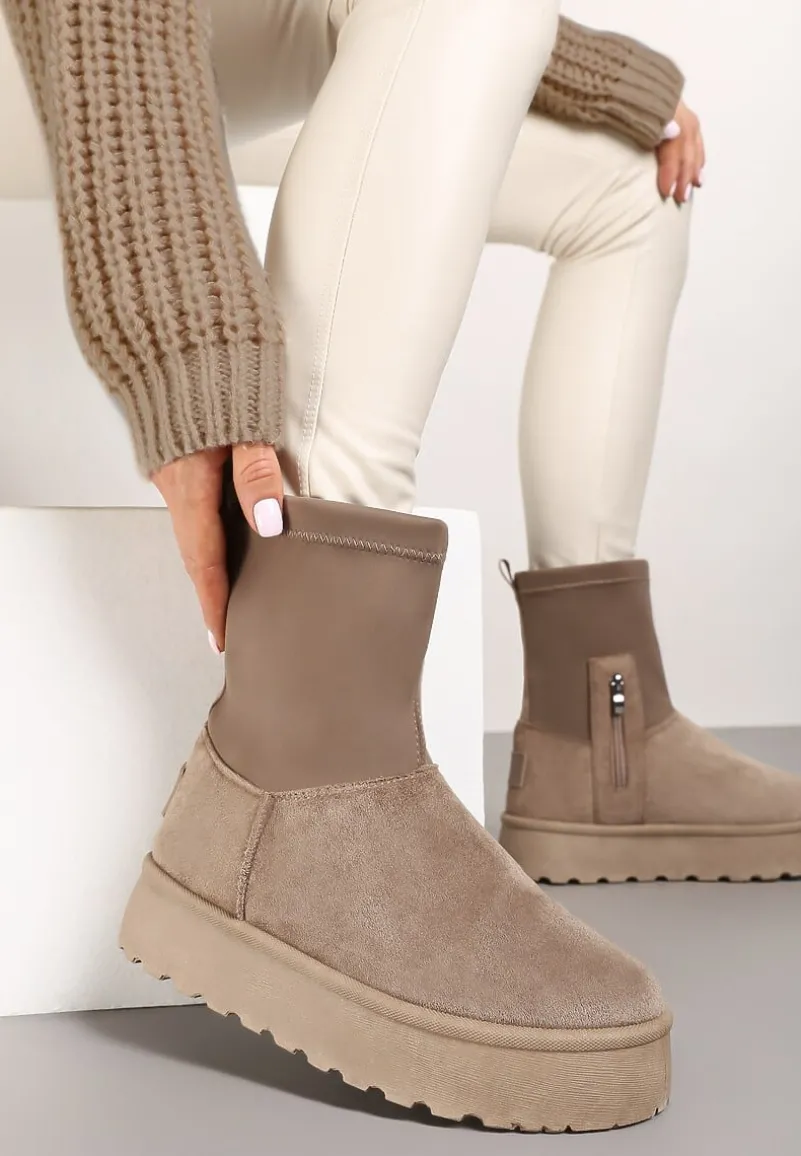 Śniegowce Nikisya to kwintesencja komfortu i stylu. Niska platforma zapewnia stabilność, a futrzana wkładka zapewnia ciepło. To buty, które nie tylko ochronią przed zimnem, ale także zapewniają modny charakter i funkcjonalność dzięki zaokrąglonemu noskowi i praktycznemu zapięciu na suwak, które ułatwia ich zakładanie. Śniegowce Nikisya to niezastąpiony must-have na zimowy sezon, doskonały do wszelkich casualowych stylizacji. Na co dzień noś je w połączeniu z dopasowanymi jeansami i oversize’owym swetrem, a na specjalne okazje postaw na zestawienie z wełnianą spódnicą i stylową parką.
