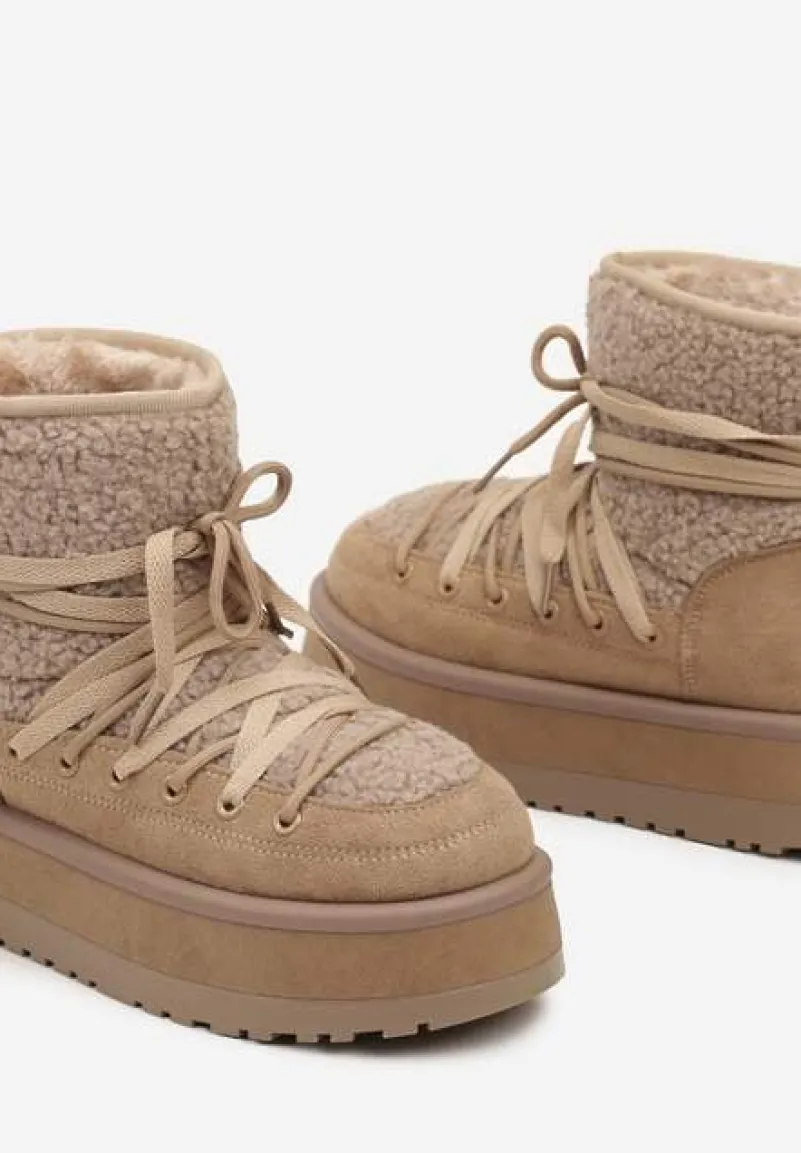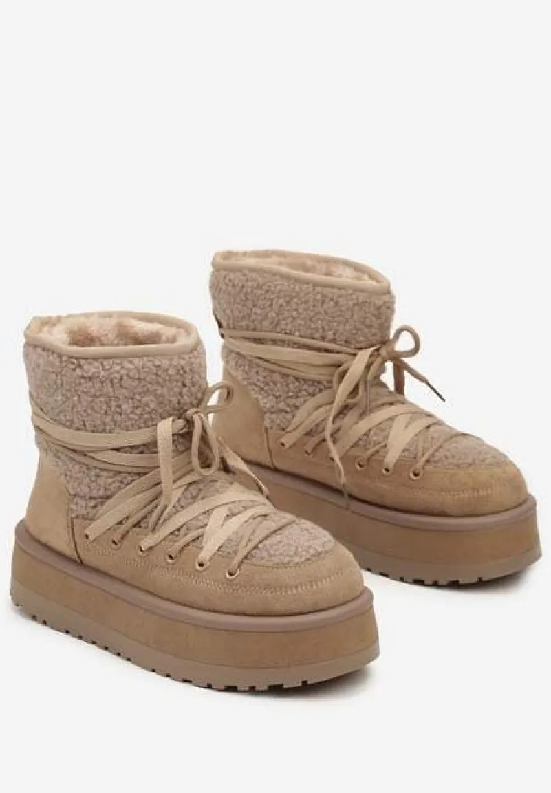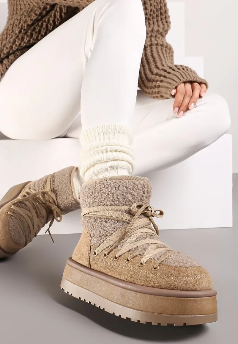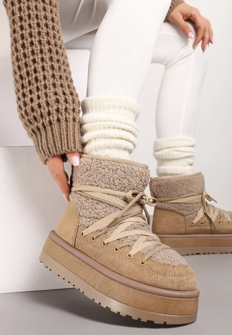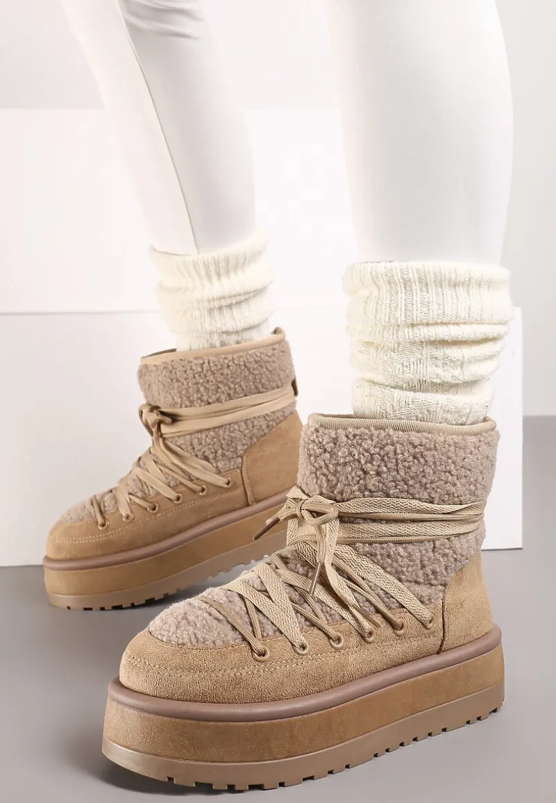 Odkryj niebanalne połączenie stylu z śniegowcami na platformie Sinessia, które stworzą niepowtarzalny zestaw zarówno na chłodniejsze, jak i cieplejsze dni. Wyposażone w platformę, gwarantują stabilność i dodają centymetrów wzrostu. Ozdobne sznurowanie dodaje charakteru i pozwala na dopasowanie do łydki. Te trendy buty świetnie sprawdzą się na co dzień, zestawione z casualowymi, oversize’owymi swetrami, a także jako akcent stylizacji do eleganckich, wełnianych płaszczy.
