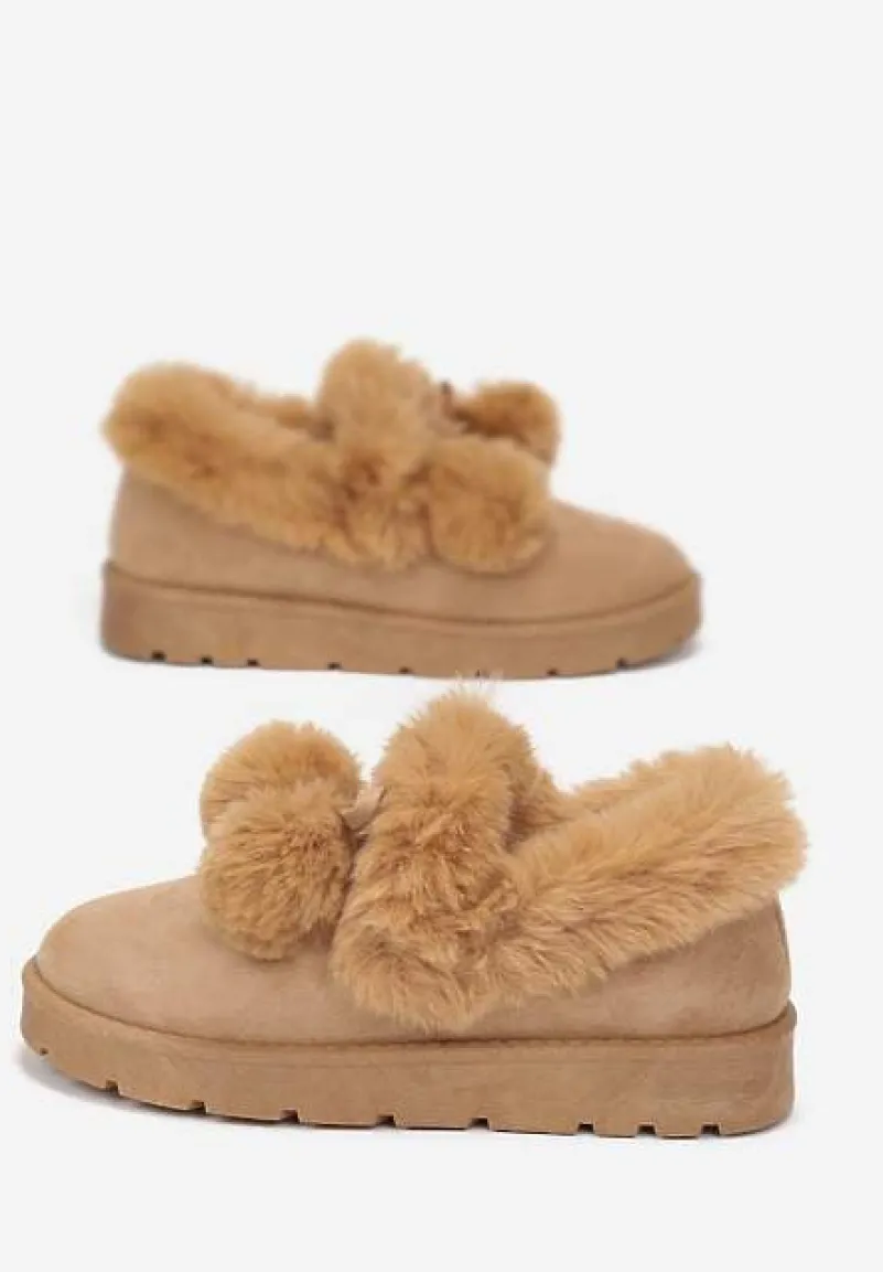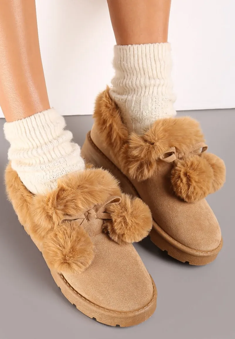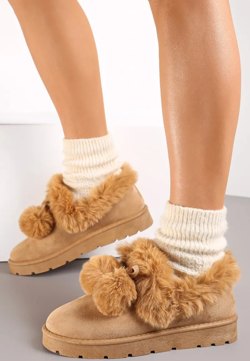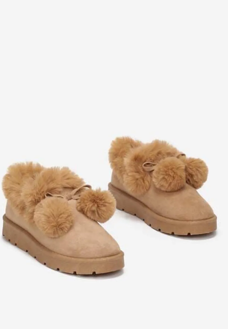 Śniegowce przed Kostkę na Platformie z Futerkiem Tolonno to idealne buty dla wszystkich fashionistek, które cenią sobie zarówno styl, jak i komfort oraz ciepło. Płaska podeszwa zapewnia stabilność, a futrzana wyściółka otula stopy, chroniąc przed chłodem w mroźne dni. Zgrabny, zaokrąglony nosek w połączeniu z subtelnym zdobieniem z pomponami daje wyjątkowy efekt wizualny. Na co dzień połącz je z jeansami i oversize’owym swetrem, a na wieczorne wyjście — ze skórzaną spódnicą i elegancką bluzką, by stworzyć modny, nowoczesny look!