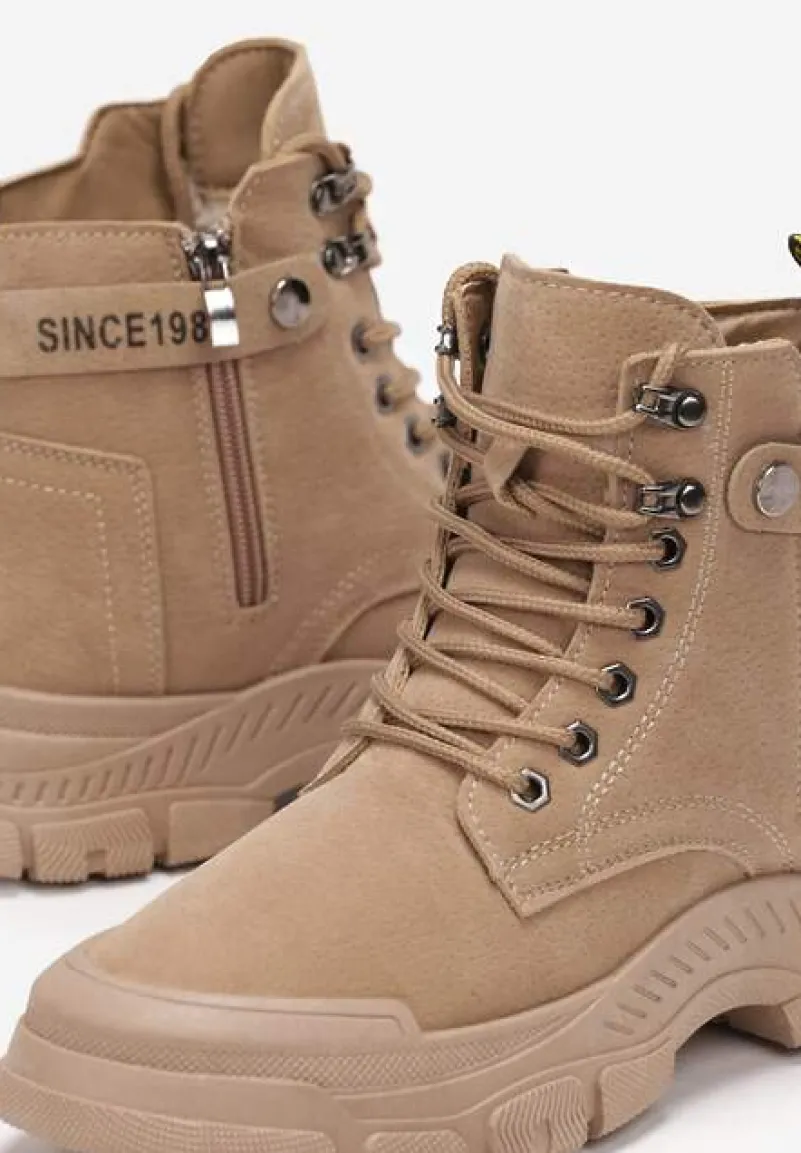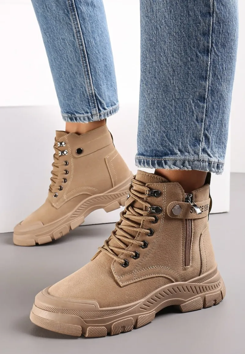 Odkryj Sznurowane Botki Traperki Trewenna! Modna, gruba podeszwa gwarantuje stabilność, a ocieplana wyściółka chroni przed chłodem. Okrągły nosek buta łączy komfort z trendami, a praktyczne zapięcie na sznurówki i suwak umożliwia idealne dopasowanie. Traperki Trewenna dodadzą charakteru każdej Twojej stylizacji. Stwórz niebanalny zestaw, dobierając je do oversize’owej kurtki puchowej i jeansów na codzienne wyjścia, lub połącz z dzianinową sukienką maxi i płaszczem na wieczorne spotkanie ze znajomymi!