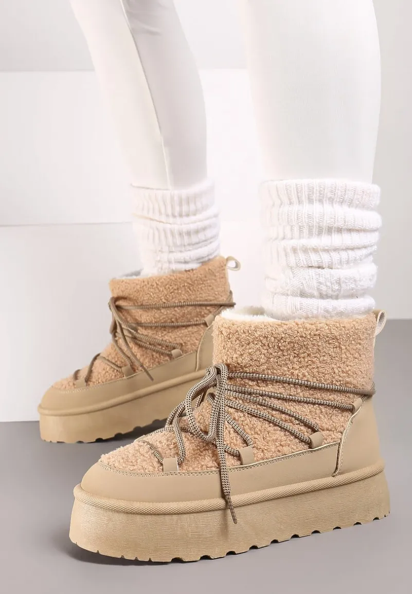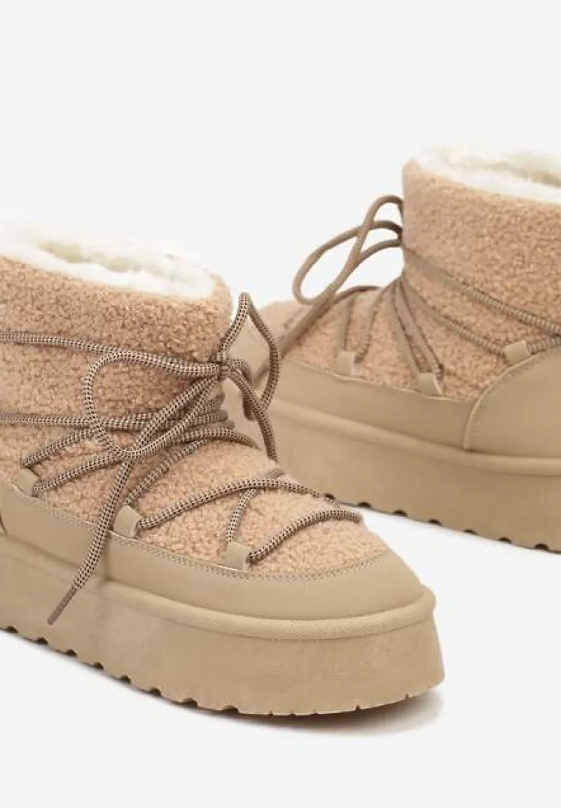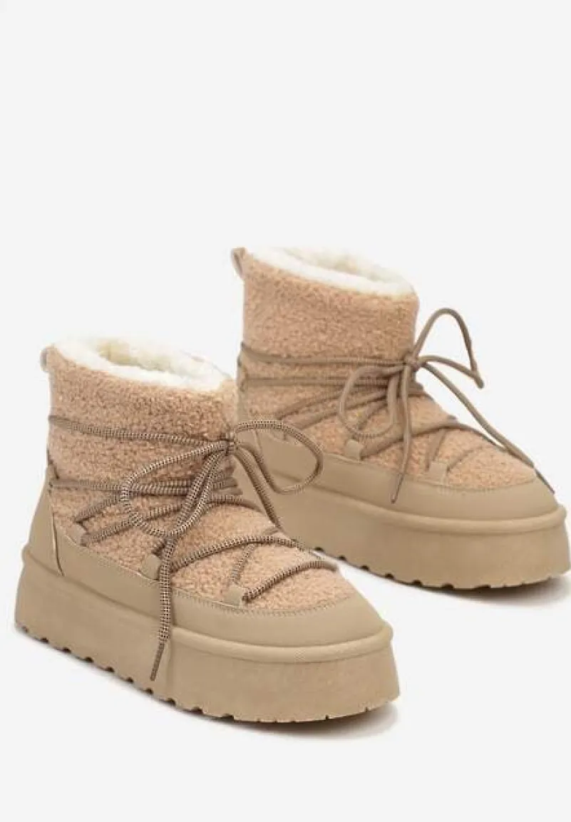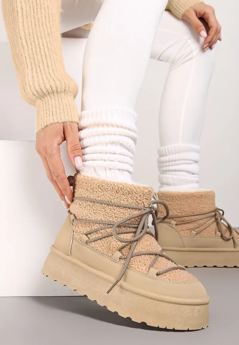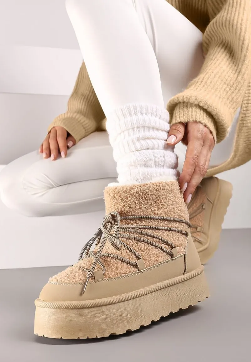 Sznurowane śniegowce na platformie Miathalie to must-have dla każdej fashionistki, ceniącej sobie ciepło i trendy wygląd. Platforma dodaje im lekkości, a okrągły nosek buta gwarantuje przestrzeń dla Twoich palców. Zapięcie na sznurowadła pozwala dopasować je do nogi, a obuwie jest wyborem idealnym na sezon jesienno-zimowy. Ozdobione futerkiem w stylu baranka, stanowią świetne uzupełnienie casualowych stylizacji z oversize’owym swetrem lub elegancki akcent, gdy założysz je do obcisłej sukienki i płaszcza w pudrowym kolorze.
