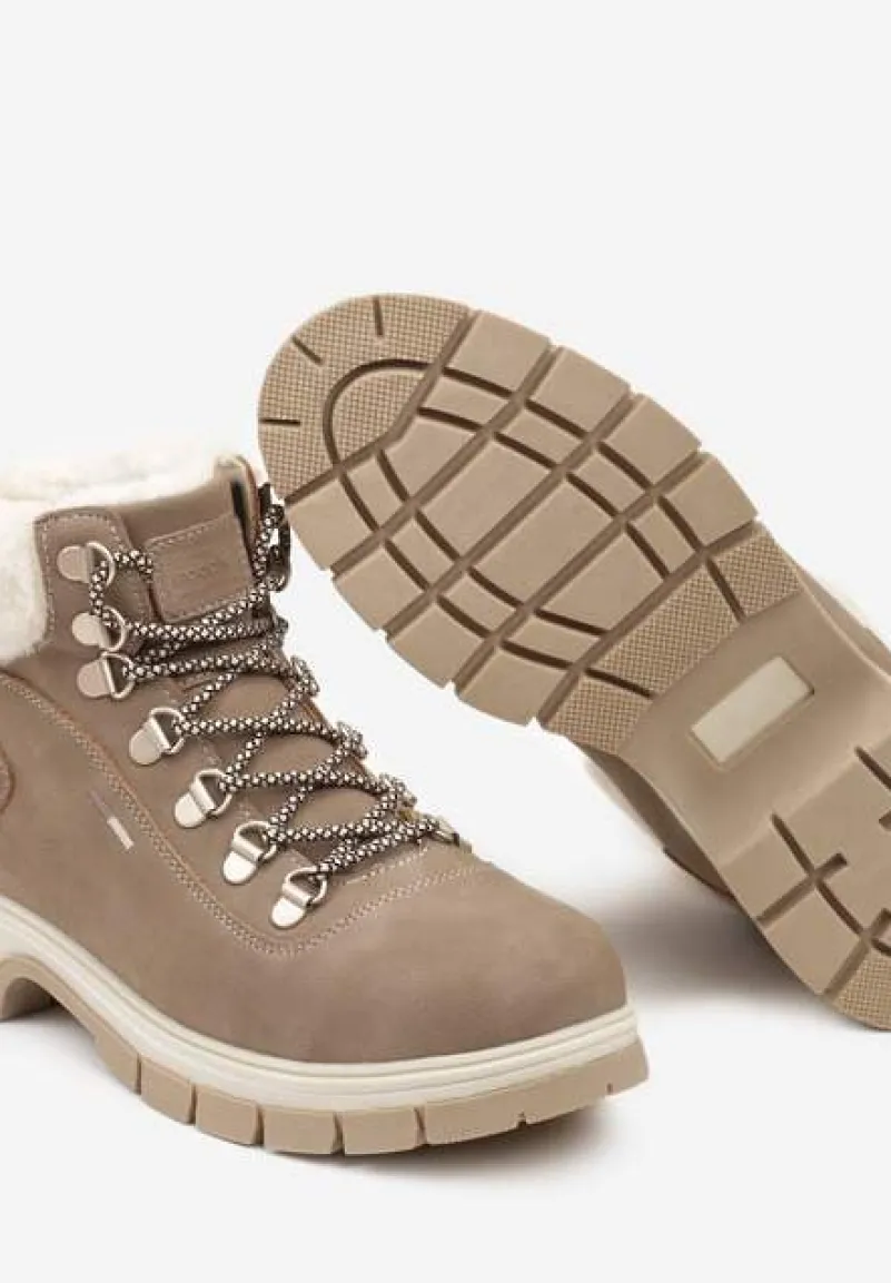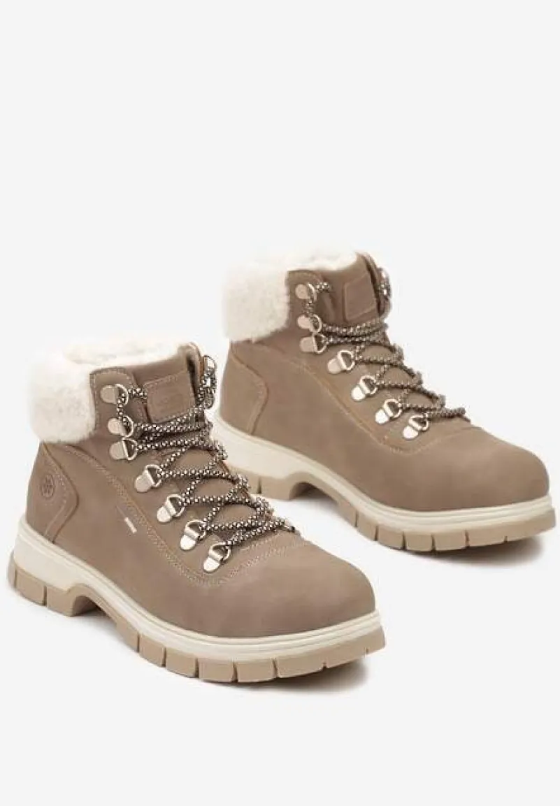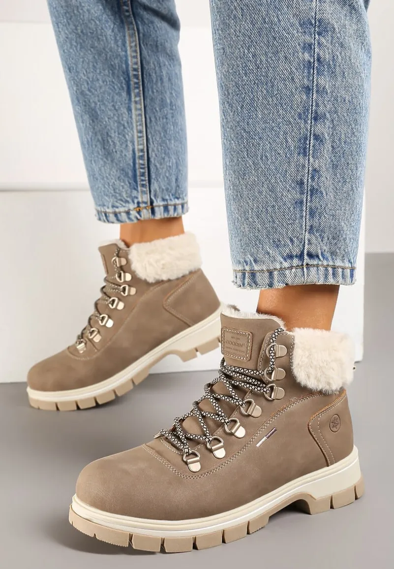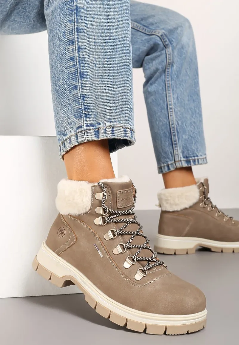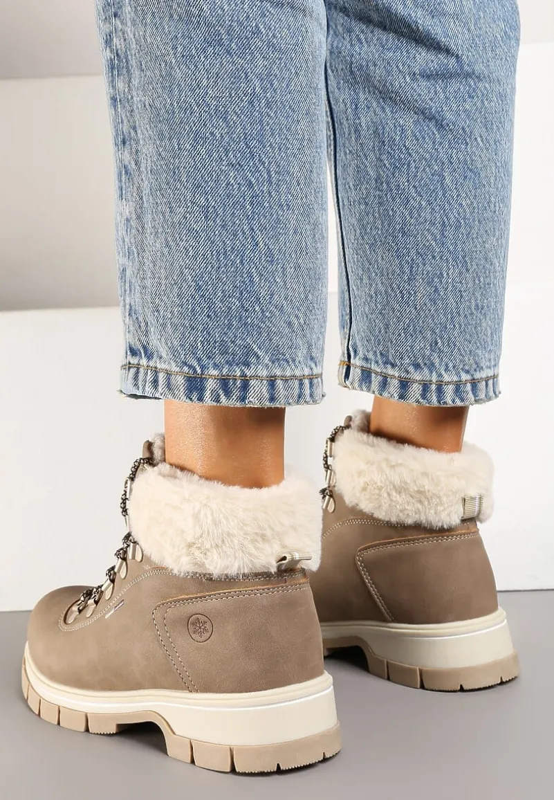 Sznurowane Traperki na Płaskiej Podeszwie Ozdobione Futerkiem Seassia to idealny wybór dla miłośniczek mody, które cenią sobie styl. Płaska podeszwa i ozdobne futerko doskonale sprawdzą się w chłodniejsze dni, dodając Twojej stylizacji niepowtarzalnego uroku. Sznurowane zapięcie nadaje im charakteru, a okrągły nosek zapewnia swobodę. Połącz je z obcisłymi jeansami i oversizowym swetrem na co dzień lub wybierz elegancki płaszcz i spódnicę, by stworzyć odważny look na wieczorne wyjście.