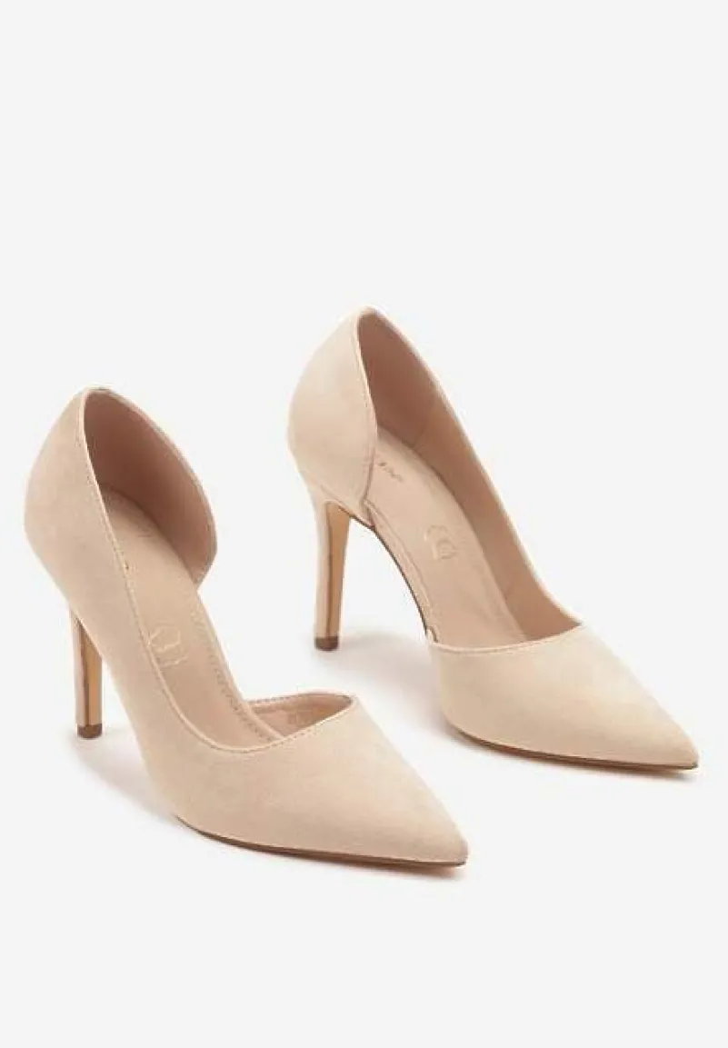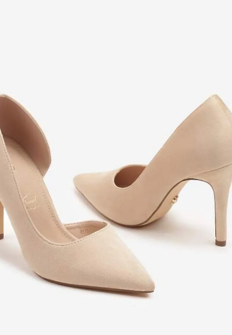 Ciemnobeżowe Szpilki Vices z Wkładką ze Skóry Naturalnej Ozdobione Wycięciem Oliritia