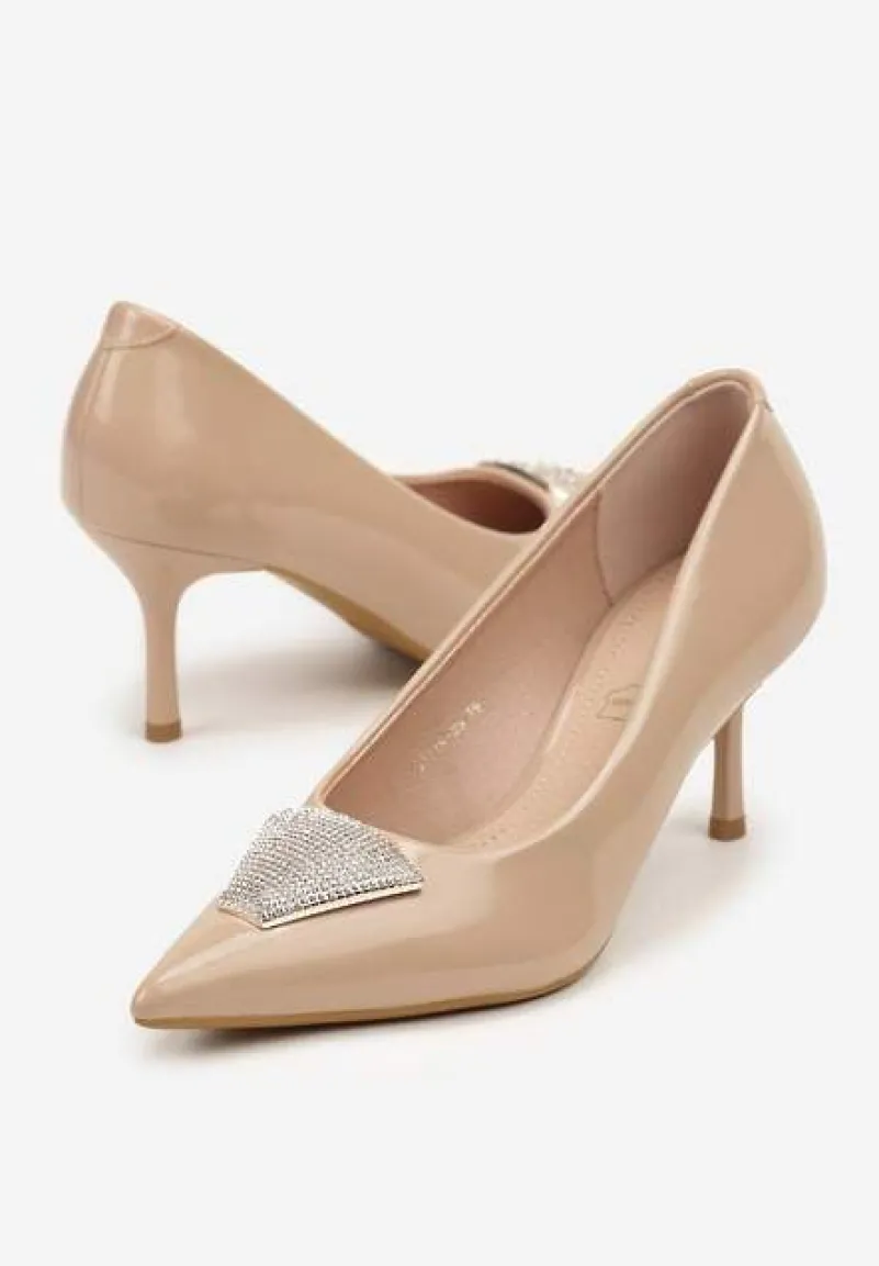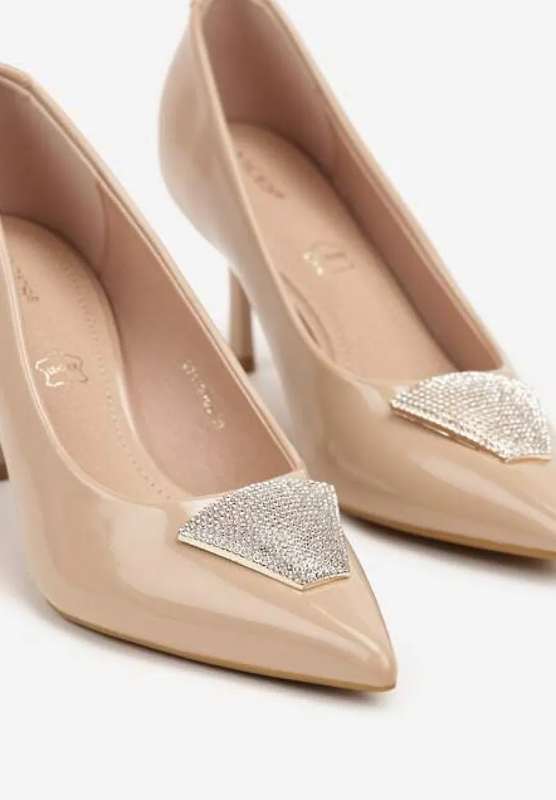 Ciemnobeżowe Szpilki Vices Zdobione Aplikacją z Cyrkoniami Niravine