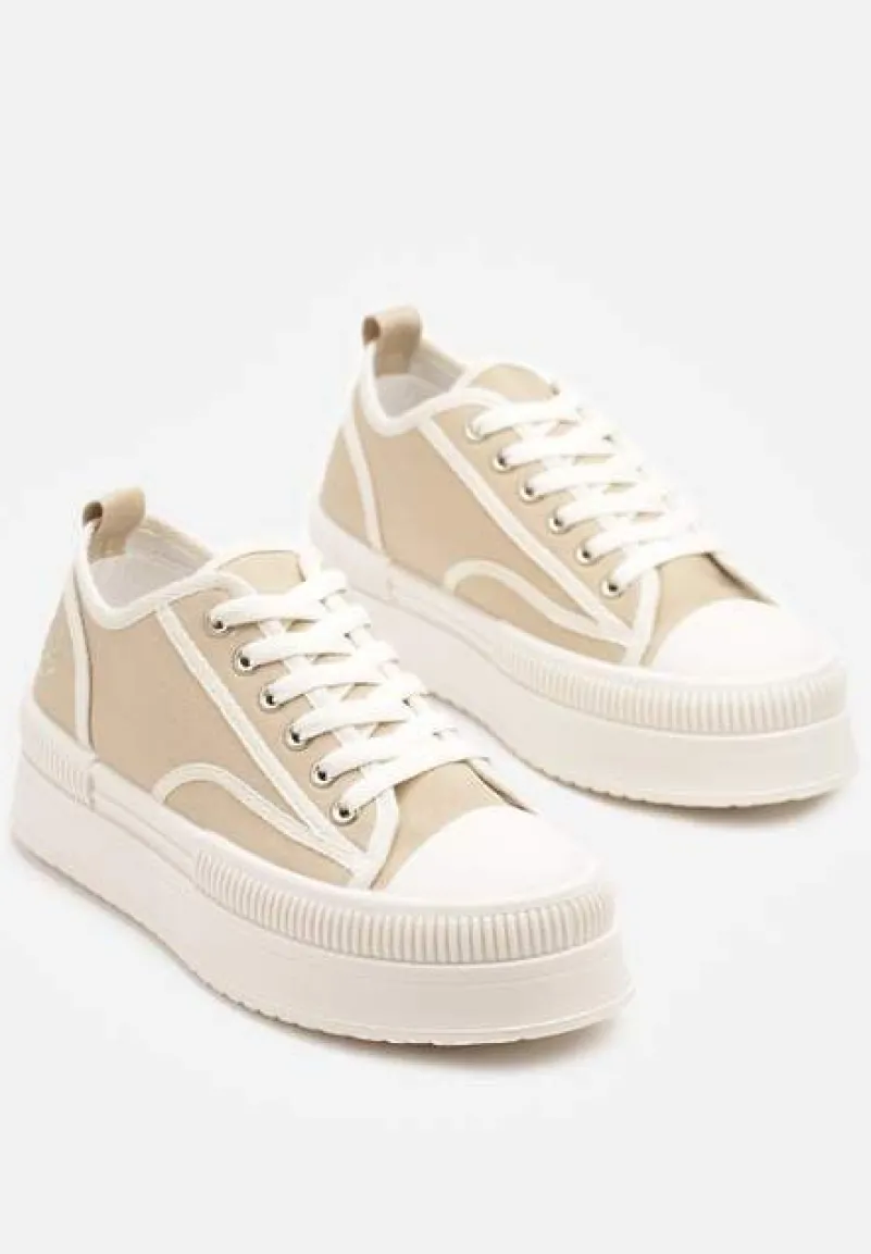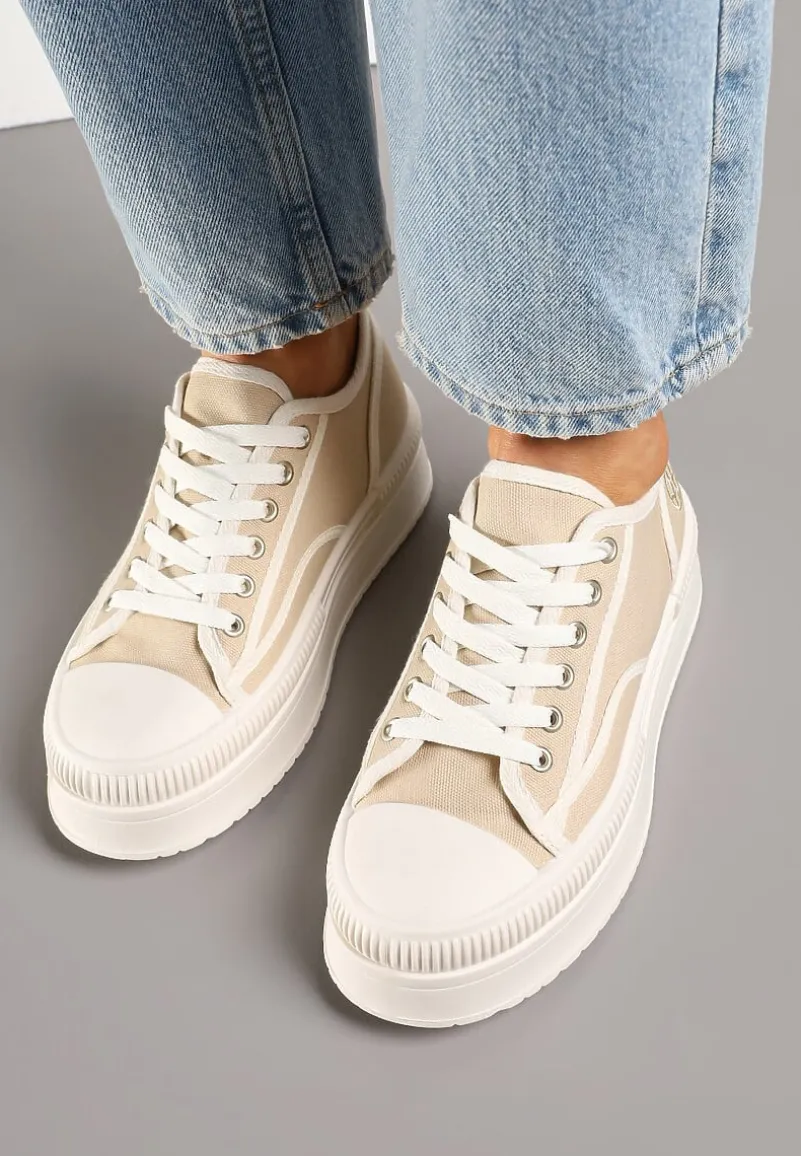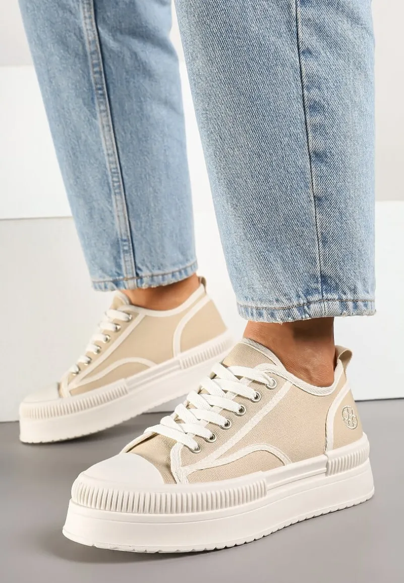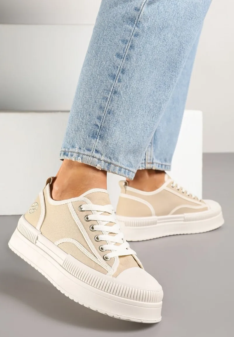 Trampki na Platformie z Metaliczną Ozdobą Afleeria to buty, które nadadzą Twoim stylizacjom unikalnego charakteru. Platforma dodaje kilku centymetrów wzrostu, dzięki czemu każda sylwetka zyskuje smukłość i pewność siebie. Stylowy, zaokrąglony nosek oraz praktyczne sznurowanie sprawiają, że te trampki to idealny wybór na co dzień. Możesz je zestawić z jeansową kurtką i krótką sukienką na wiosenne spacery.