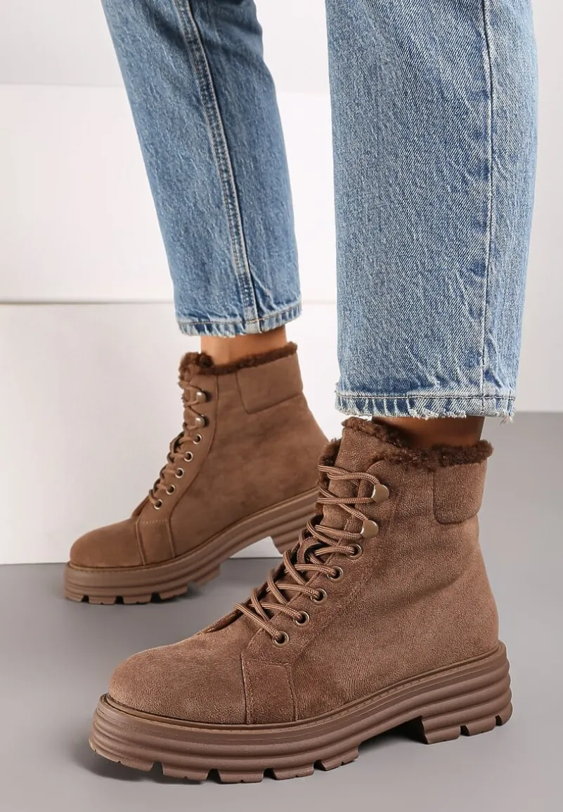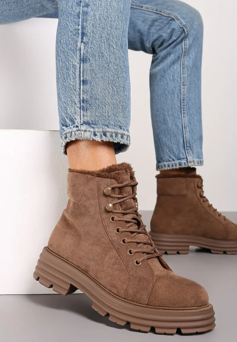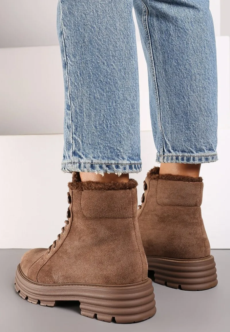 Traperki Narinora to absolutny must-have dla fashionistek, które cenią sobie połączenie komfortu i stylu. Zaokrąglony nosek i solidne sznurowanie nadają charakteru, a gruba podeszwa gwarantuje komfort. Dzięki futerkowym zdobieniom dodasz swojemu lookowi odrobiny ekstrawagancji. Idealnie sprawdzą się w zestawieniu z dopasowanymi jeansami, oversize’owym swetrem oraz modną parką – na co dzień lub podczas weekendowych wypadów za miasto.