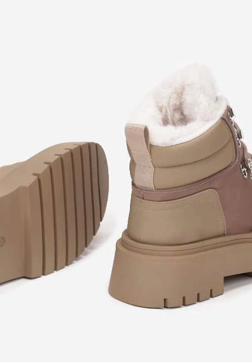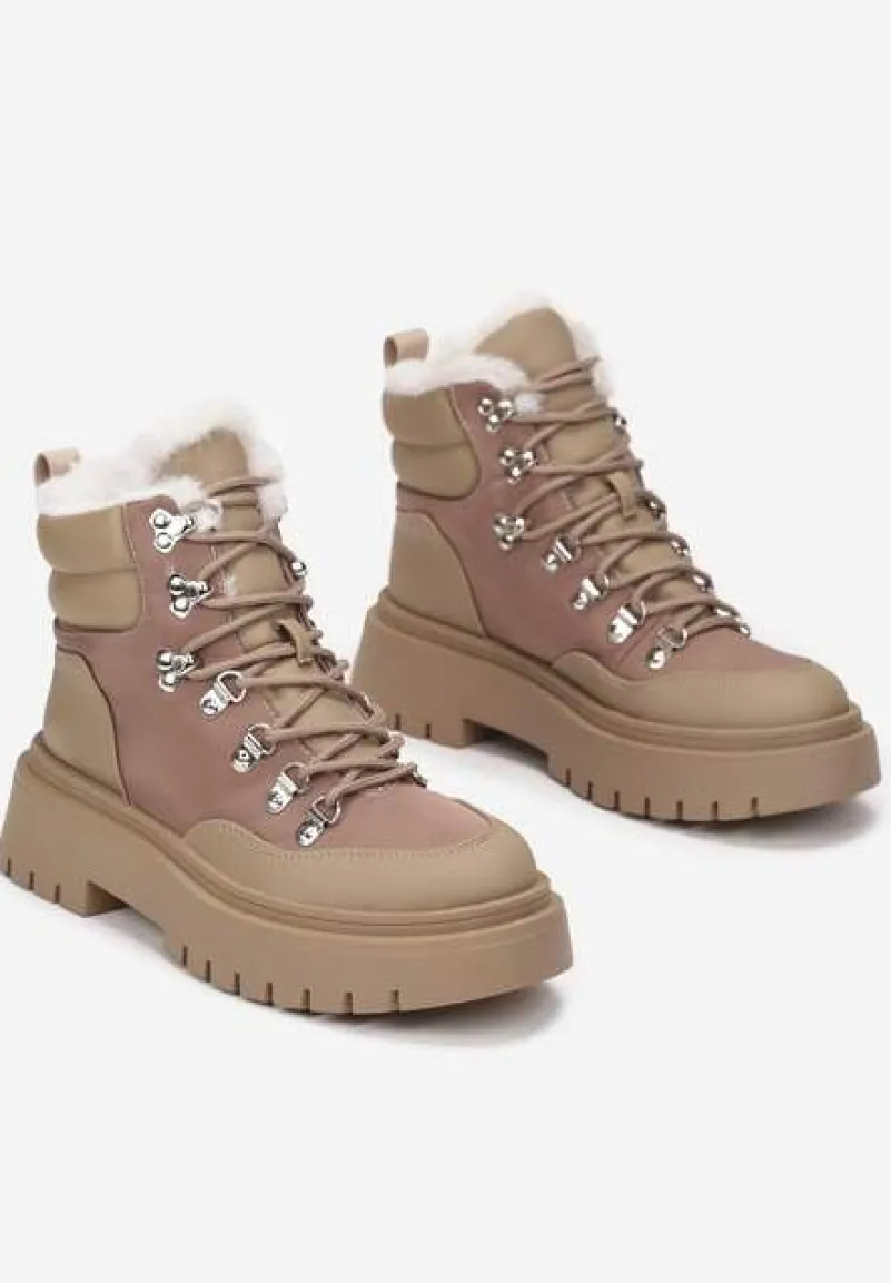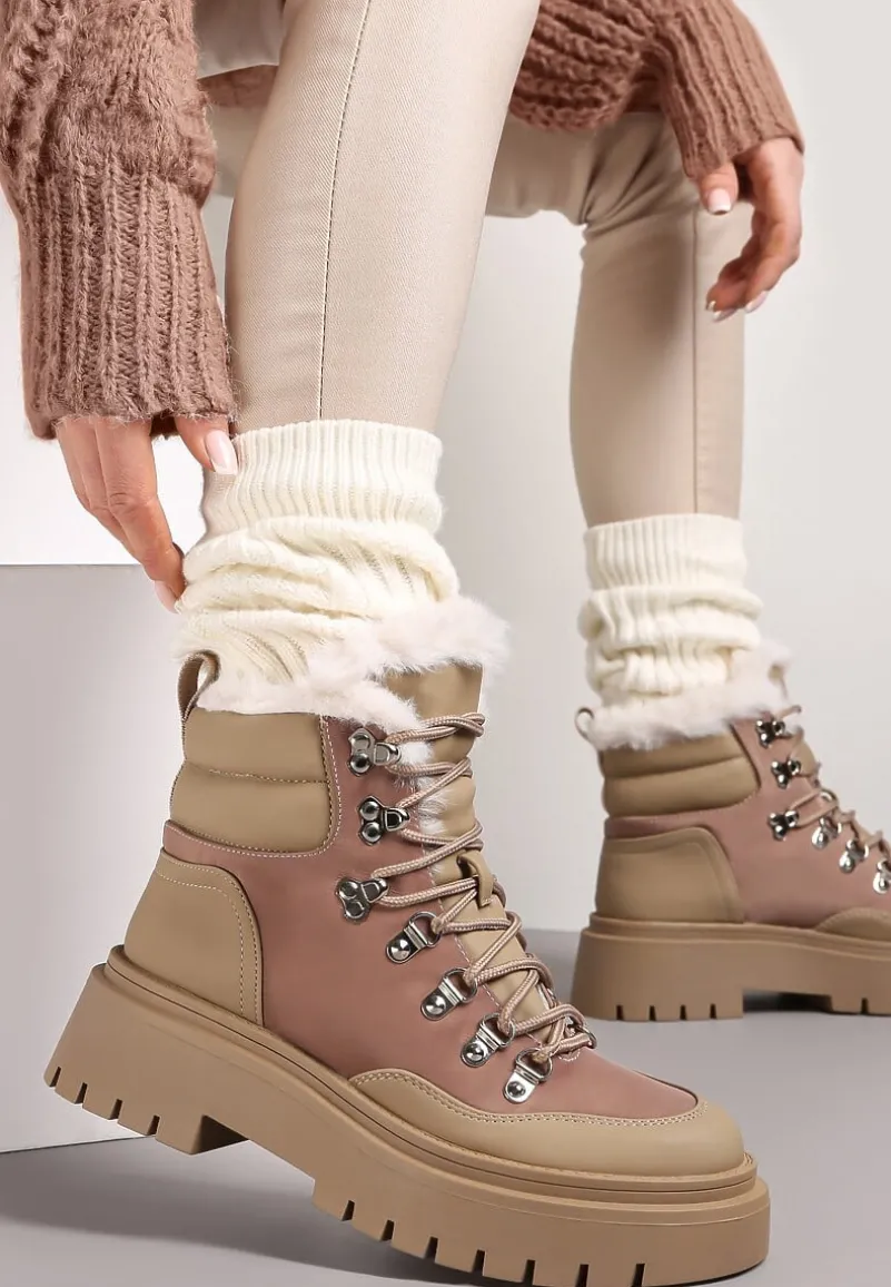 Traperki Sznurowane z Futerkiem Henna to must-have dla fanek streetwearu i miejskiej elegancji. Ich gruba podeszwa dodaje odrobinę nonszalancji, a wewnętrzne ocieplenie z futerkiem zapewnia ciepło w chłodniejsze dni. Z okrągłym noskiem i sznurowanym zapięciem, te buty doskonale wpasowują się w casualowy styl. Na co dzień zestaw je z ulubionymi jeansami i oversize’ową kurtką, a na wieczór dodaj sukienkę w stylu boho i błyszczącą torebkę. Zaleca się zakup mniejszego rozmiaru.
