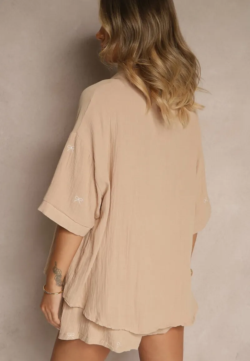Komplet z Bawełny z Koszulą Zdobioną Haftem i Szortami Dortebia to synonim swobodnej elegancji idealnej na wiosnę i lato. Luźny krój koszuli i szortów zapewnia komfort noszenia, a unikalne hafty wprowadzają subtelny akcent, który przyciąga wzrok. Szorty posiadają praktyczne wsuwane kieszenie, wiązanie w pasie oraz elastyczną gumkę w talii, która rozciąga się do 46 cm przy rozmiarze M/L, 49 cm — L/XL, 51 cm — XL/XXL. Na co dzień zestaw ten świetnie sprawdzi się z białymi trampkami i delikatną biżuterią, a na wieczorne wyjście dodaj do niego mokasyny i elegancką torebkę. Musisz go mieć!
