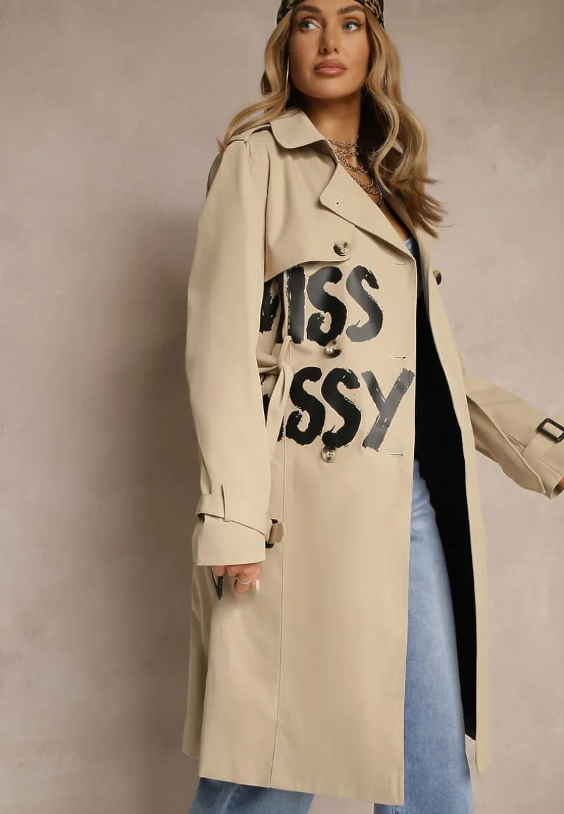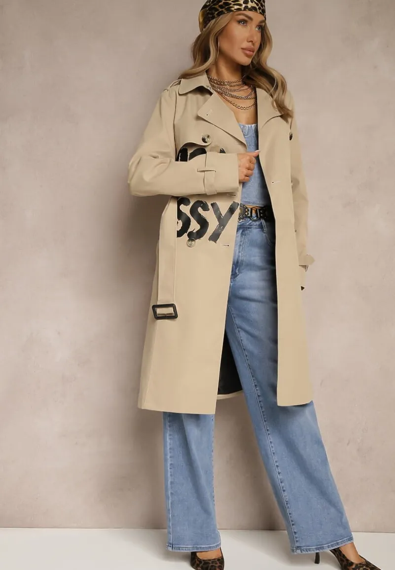 Płaszcz Dwurzędowy Trencz z Wiskozą Ozdobiony Napisem i Paskiem Janisella z podszewką to absolutny must-have dla każdej modnej kobiety! Doskonały na sezon przejściowy, łączy elegancję z odrobiną nonszalancji, dzięki stylowemu napisu i paskowi, który pięknie podkreśla talię. Jego uniwersalny krój na guziki sprawia, że idealnie nadaje się zarówno na formalne spotkania, jak i casualowe wyjścia. Połącz go z ulubionymi jeansami i botkami na co dzień lub z klasyczną sukienką i szpilkami na wieczorną imprezę – w takim wydaniu zawsze będziesz wyglądać olśniewająco!