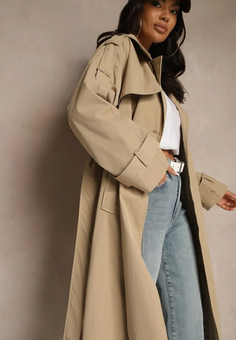 Płaszcz Trencz Valezi to esencja ponadczasowej elegancji. Dwurzędowy krój z szykownym rozcięciem i szeroką klapą na plecach subtelnie podkreśli każdą sylwetkę, a wiązanie w talii zaakcentuje figurę. Długie rękawy ozdobione paskami sprawdzą się zarówno do pracy, jak i podczas weekendowych spacerów. Wystylizuj go ze skórzanymi botkami, jeansami i minimalistyczną torebką na co dzień lub zestaw z eleganckimi szpilkami, dzianinową sukienką oraz subtelnymi dodatkami, tworząc look idealny na wieczorne wyjścia.