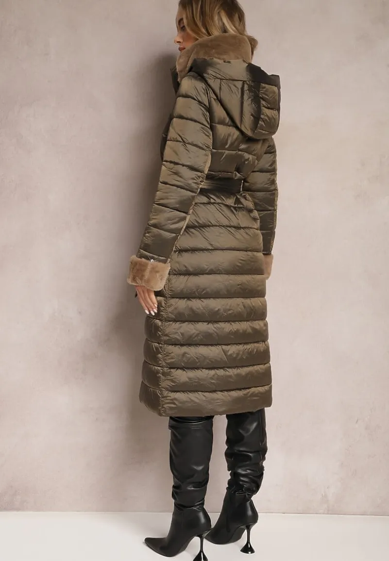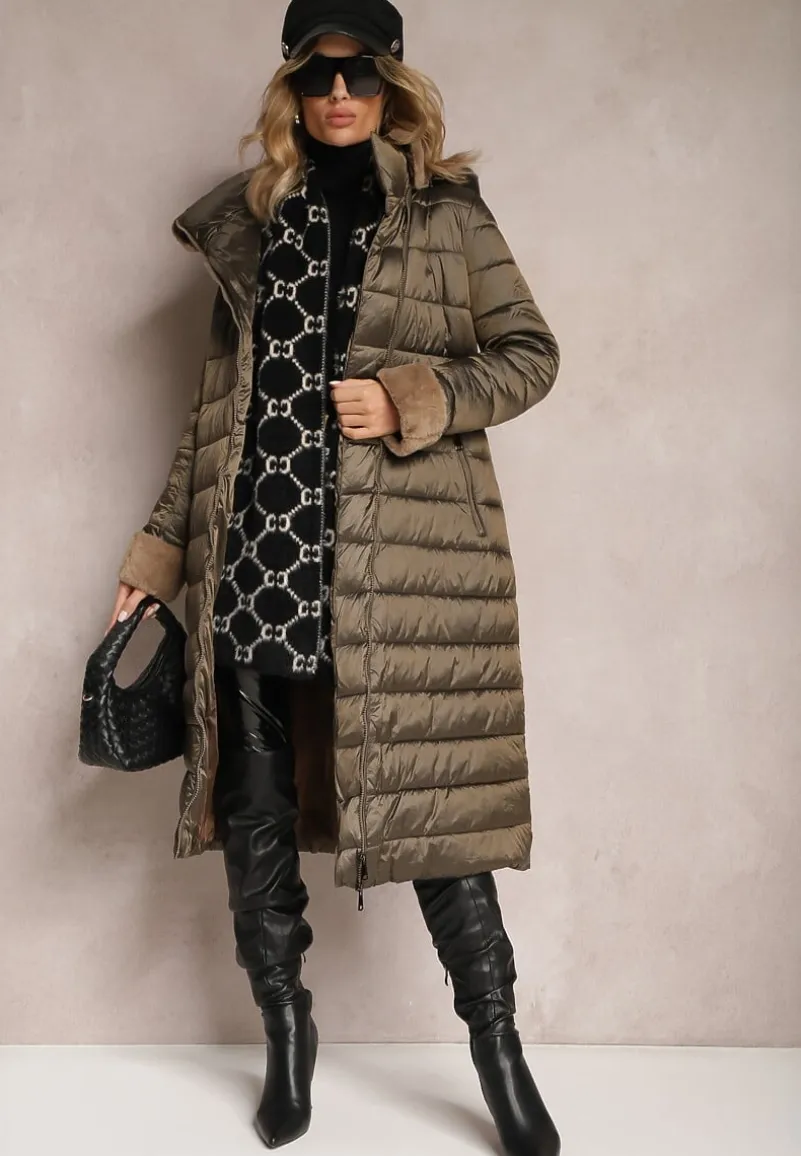 Pikowana kurtka Veloci — w fasonie dłuższego płaszcza. Posiada pasek w talii i podszewkę z tkaniny.