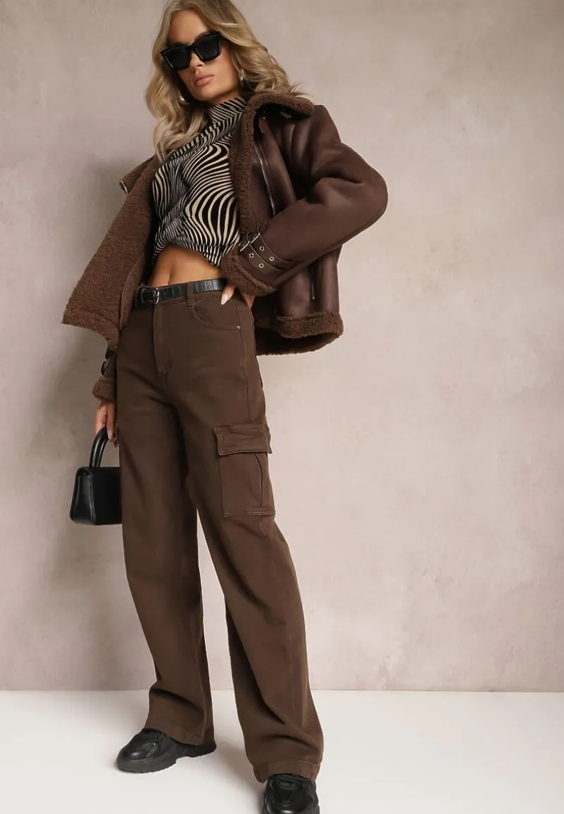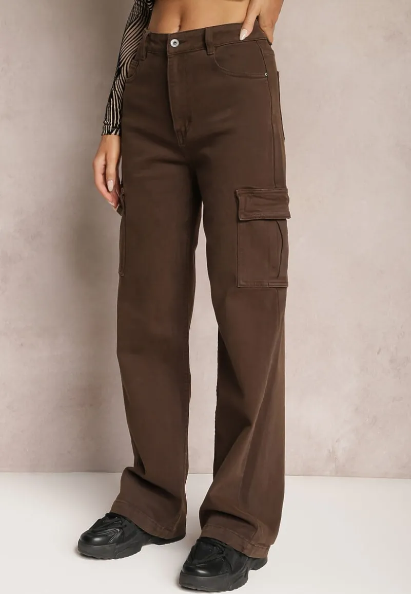 Jeansy Anora typu cargo, o szerokim fasonie. Talia high waist, zapinane z przodu na guzik i zamek błyskawiczny. Po bokach naszyte kieszenie z klapą. Dodatkowo na wysokości bioder i pośladków wsuwane kieszenie. Spodnie cargo to must-have w Twojej garderobie!