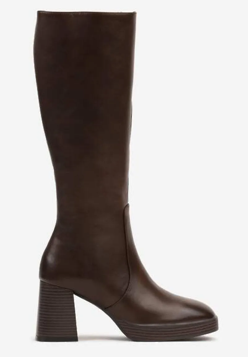 Kozaki na słupku Ansilaria to kwintesencja stylu. Praktyczny obcas słupkowy zapewnia stabilność. Zgrabny nosek i zapięcie na suwak to detale, które świadczą o klasie i elegancji tych butów, pasujące zarówno do codziennych, jak i formalnych stylizacji. Wybierz je do jesiennej sukienki w kwiaty dla boho look’u lub zestaw z ołówkową spódnicą i dopasowanym swetrem dla biznesowego szyku.