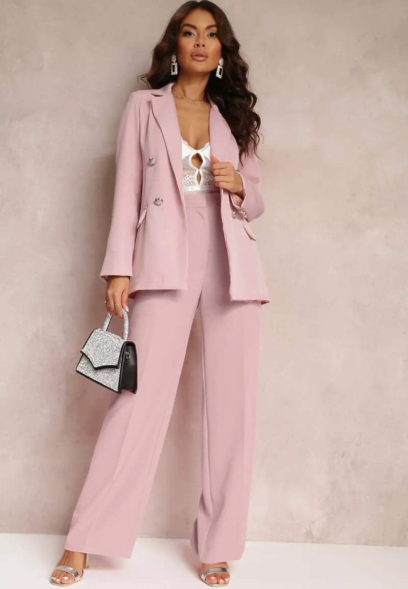 Marynarka Cose niezapinana, dekorowana biżuteryjnymi guziki z przodu i na rękawach. Posiada materiałową podszewkę. Po bokach ozdobne klapy, które imitują kieszenie.