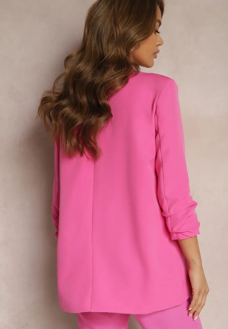 Marynarka Orolea wykonana z tkaniny o gładkiej i jednolitej strukturze. Elegancki i ponadczasowy design. Rękawy o długości 3/4, dekorowane subtelnym marszczeniem. Środek podszyty podszewką. Z głębokim, trójkątnym dekoltem oraz wykładanym kołnierzem. Po bokach ozdobne klapy. Marynarka Orolea wygląda zjawiskowo zestawiona zarówno z minimalistyczną, jak i wzorzystą stylizacją!