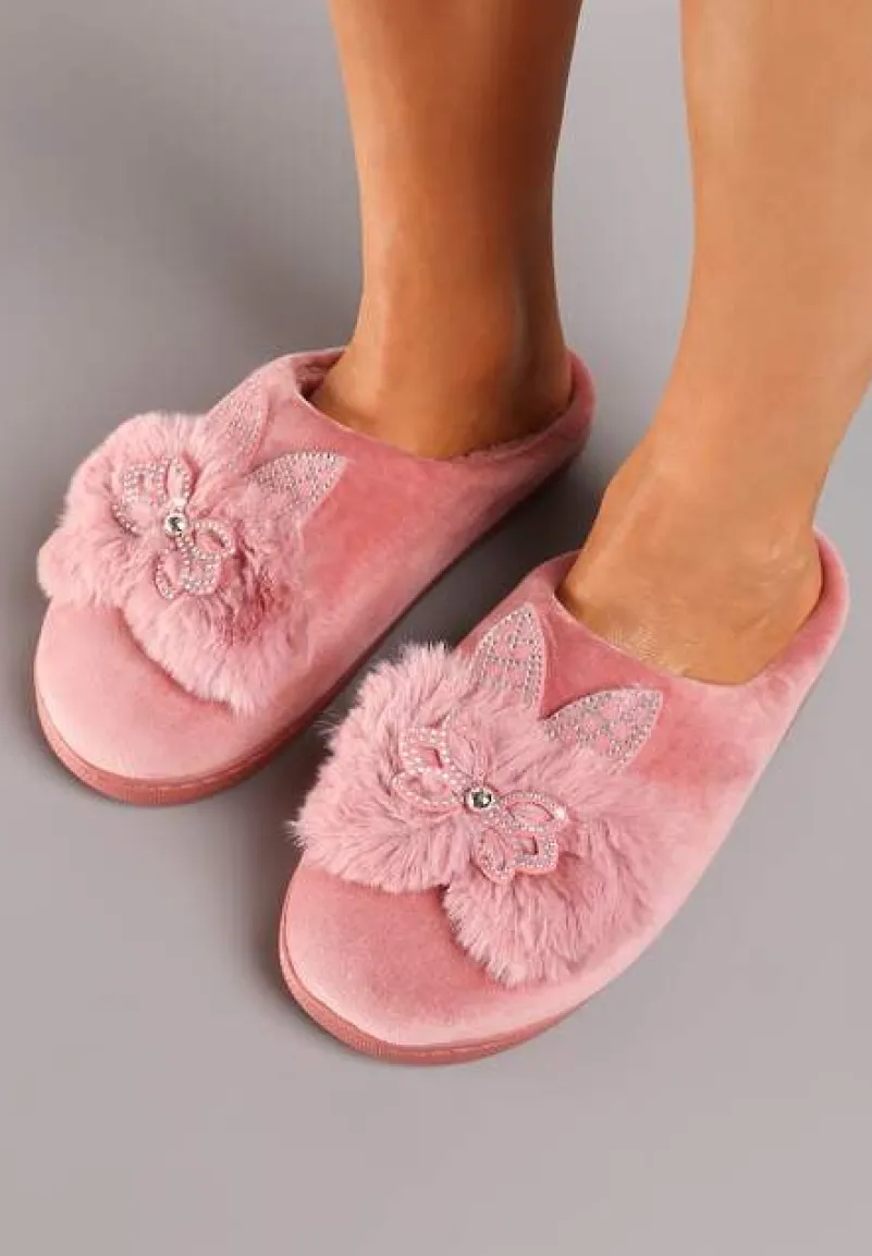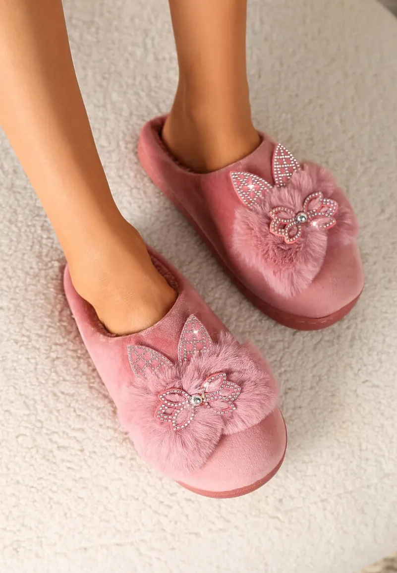 Kapcie Dezilie to kwintesencja luksusu w domowym zaciszu, idealne dla fashionistek pragnących błyszczeć nawet po zakończeniu dnia. Płaska podeszwa zapewnia stabilność. Brak zapięcia to szybkość i łatwość w zakładaniu. Piękno tych kapci podkreślają zdobienia w postaci cyrkonii oraz futerko, które dodaje uroku i ciepła w chłodniejsze wieczory. Nosząc te kapcie możesz cieszyć się stylem nawet podczas rodzinnego obiadu lub czytając książkę na kanapie – zawsze z nutką glamour!