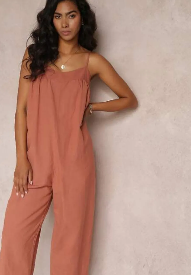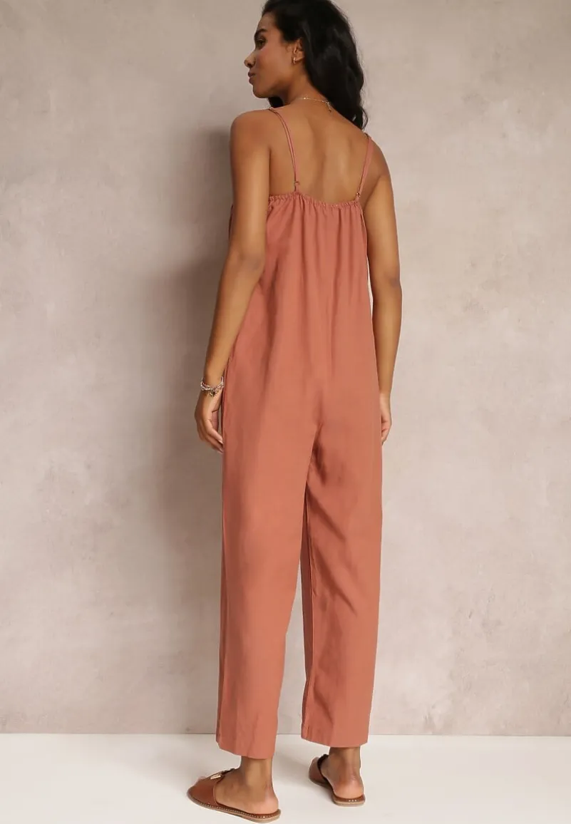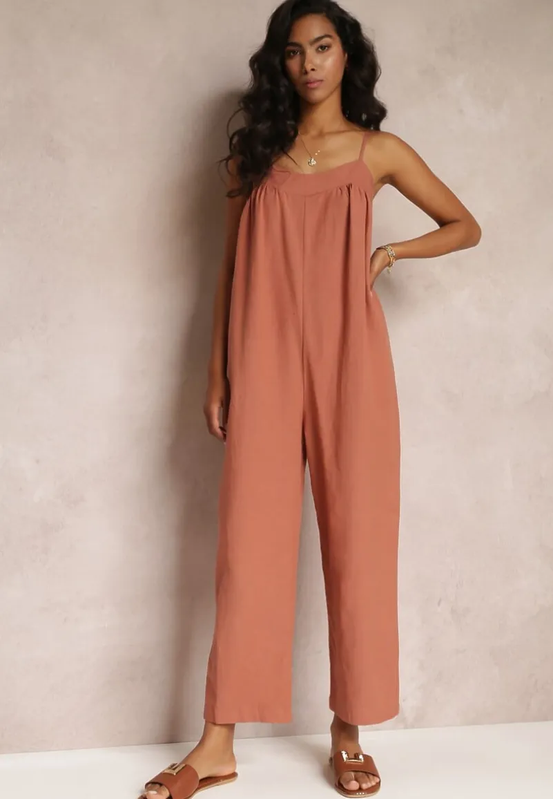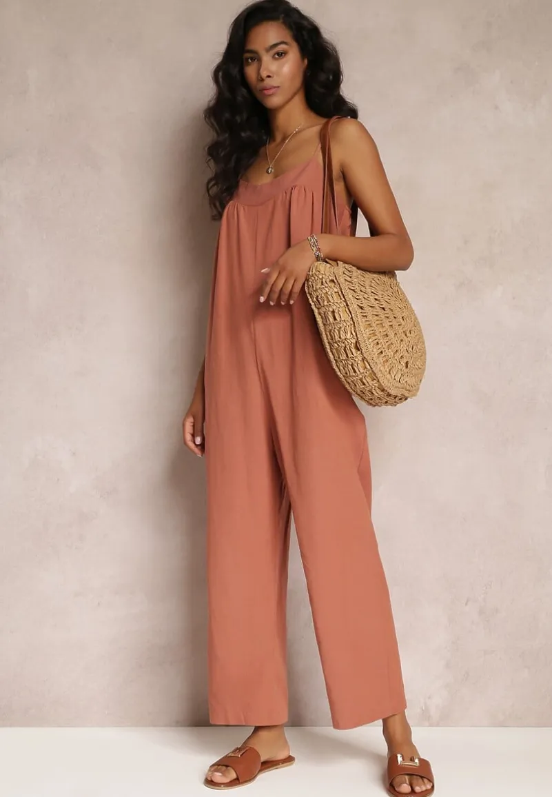 Ciemnoróżowy Kombinezon na Regulowanych Ramiączkach z Długimi Nogawkami z Bawełny Myrcela