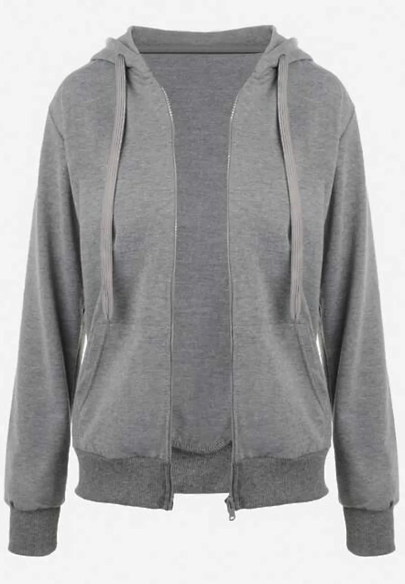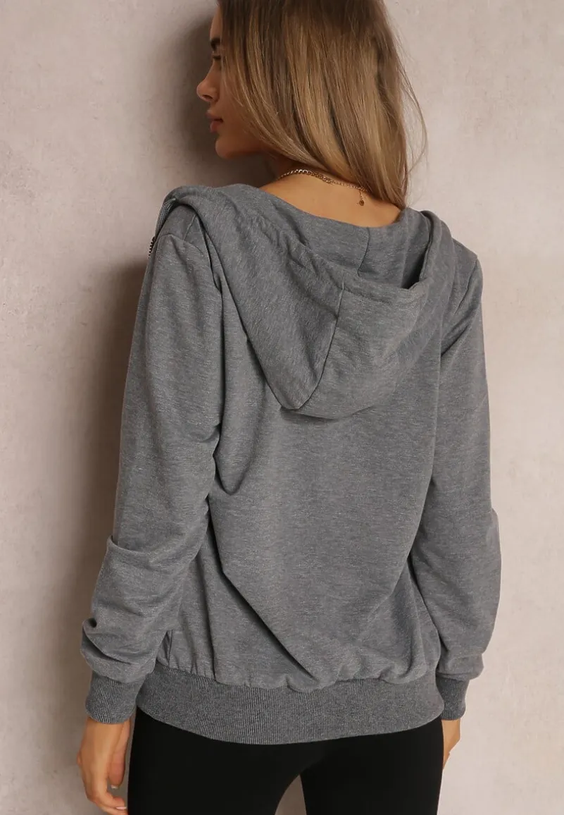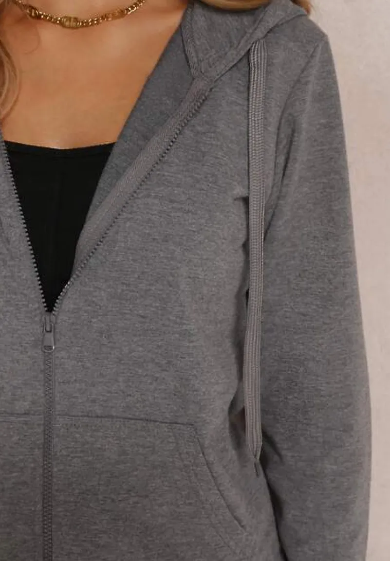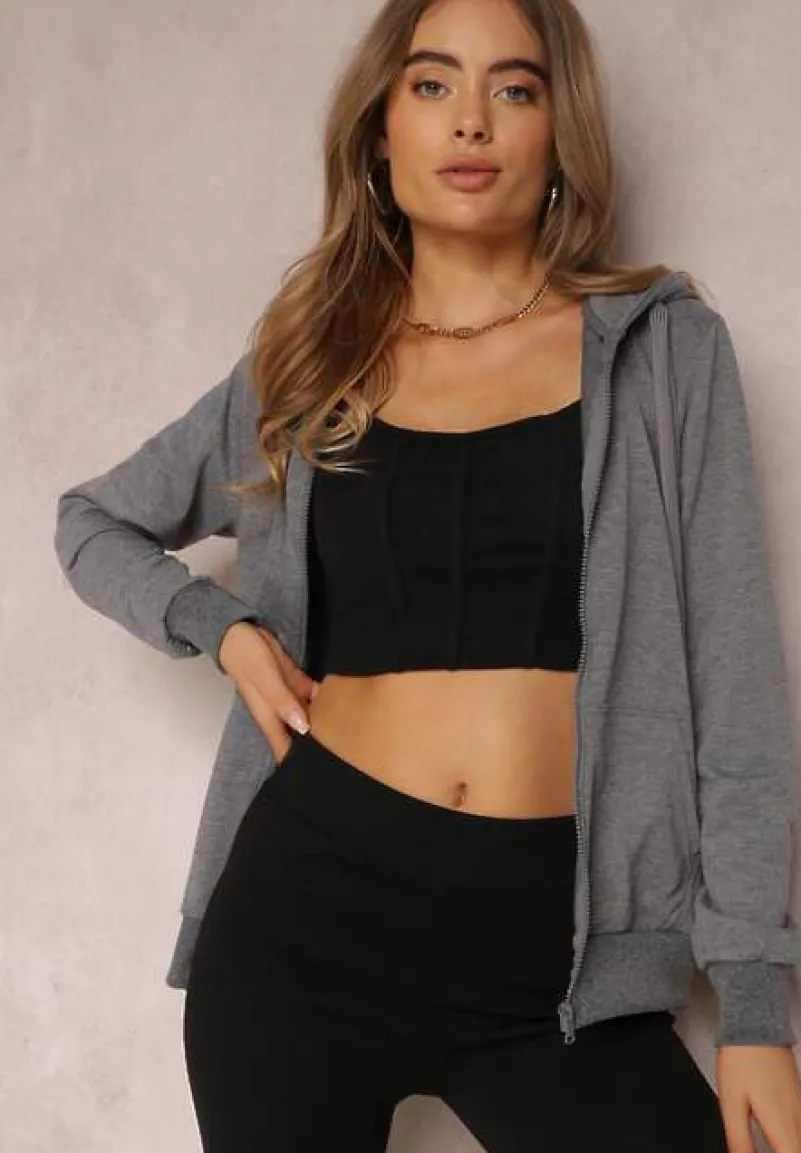 Bluza Rhodothee z długim rękawem, zapinana na funkcjonalny zamek błyskawiczny. Dół bluzy oraz jej mankiety zakończono elastycznym ściągaczem. Przy nieodpinanym kapturze znajduje się szeroki troczek pełniący rolę ściągacza. Model ma wsuwane kieszenie. Bluza wykonana jest z dzianiny w jednolitym kolorze. Idealna na jesień i zimę jako casualowo-sportowy dodatek do workerów, jeansów i topu na ramiączkach.