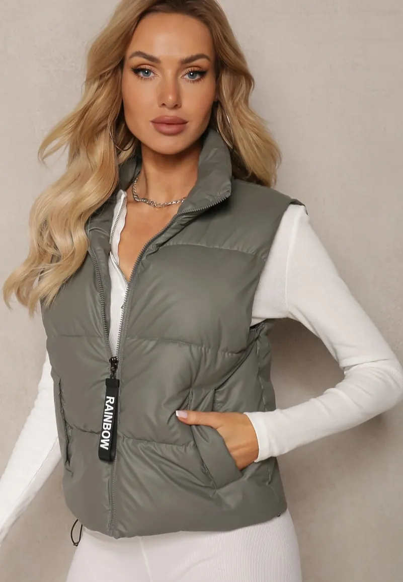 Wysoka stójka nadaje kamizelce Aklaria nowoczesny i wyrazisty wygląd, podczas gdy ozdobny suwak może stanowić interesujący akcent.