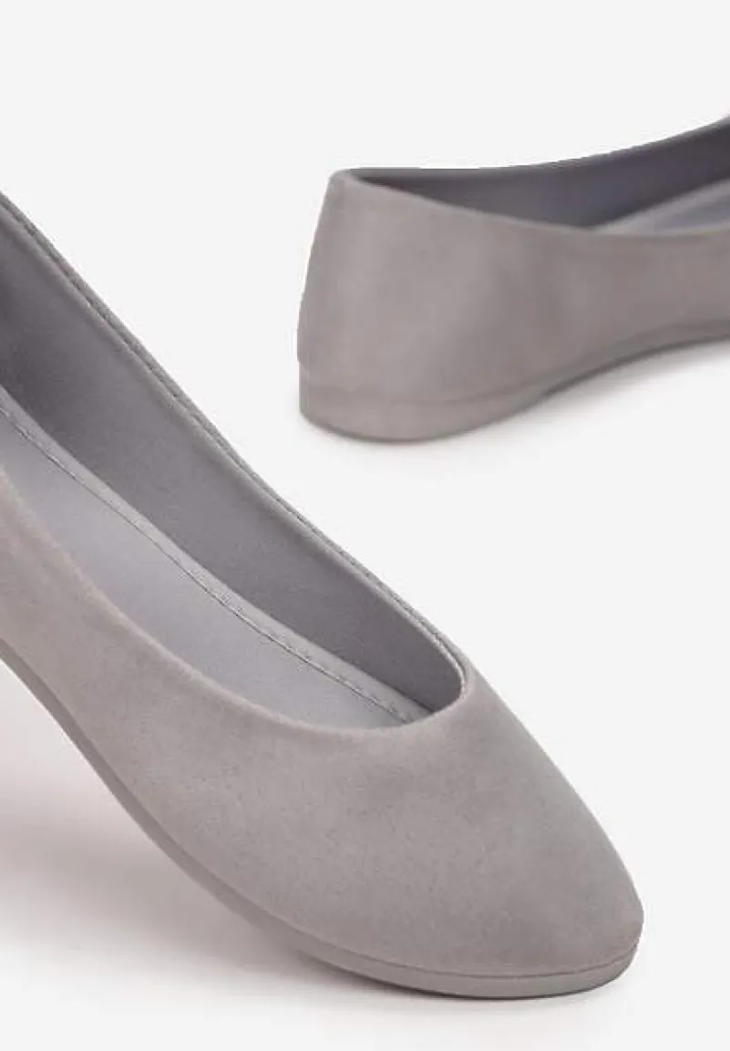 Balerinki Rhaenertise wsuwane, z cholewką odsłaniającą kostkę i zaokrąglonym, klasycznym noskiem. Na płaskiej podeszwie w takim samym kolorze. Wykonane z ekozamszu. Balerinki Rhaenertise są niezwykle uniwersalne – dopasujesz je do większości sukienek, spódnic i spodni. Wybierz rozmiar o 1 większy niż zazwyczaj.