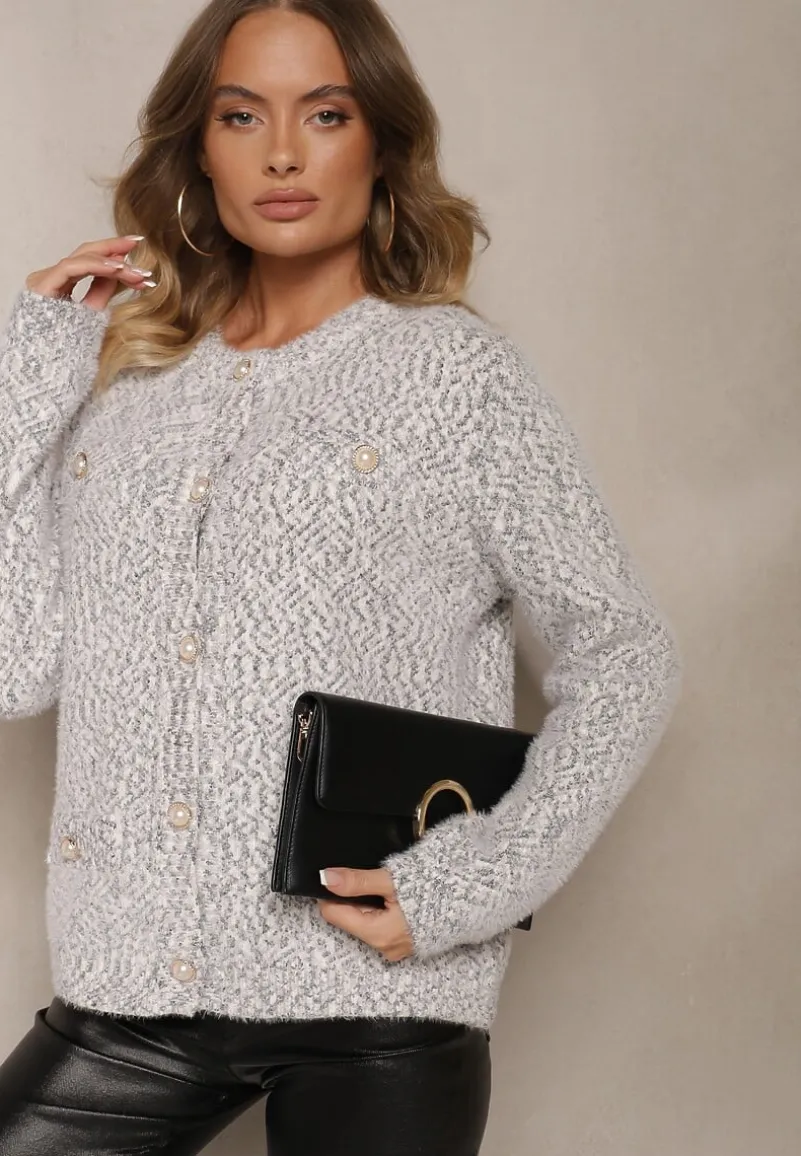 Kardigan Nomilira z wiskozą to idealny wybór dla kobiet, które cenią sobie elegancję i najnowsze trendy w modzie. Prosty fason i półokrągły dekolt dyskretnie podkreślają sylwetkę, a długie rękawy dodają subtelnej klasyki. Ozdobiony imitacją kieszeni i stylowymi guzikami, doskonale sprawdzi się na co dzień oraz na wyjątkowe okazje. Połącz go z casualowymi jeansami i botkami na co dzień, a na wieczorne wyjście postaw na ołówkową spódnicę i kolczyki w stylu glamour.