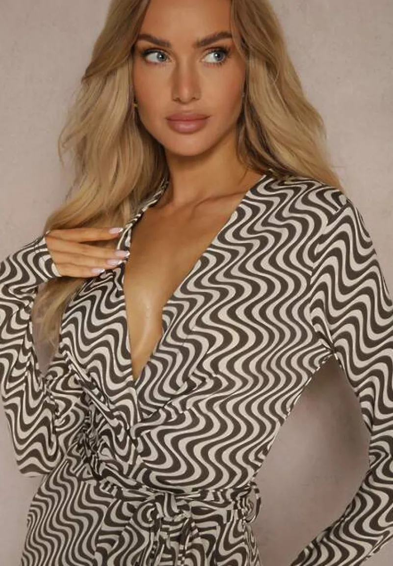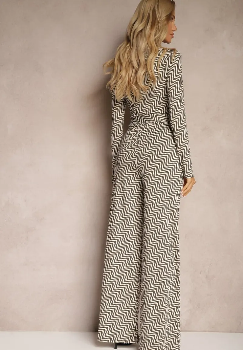 Ciemnoszary Kombinezon z Wiskozą w Geometryczny Wzór z Paskiem Nailaia