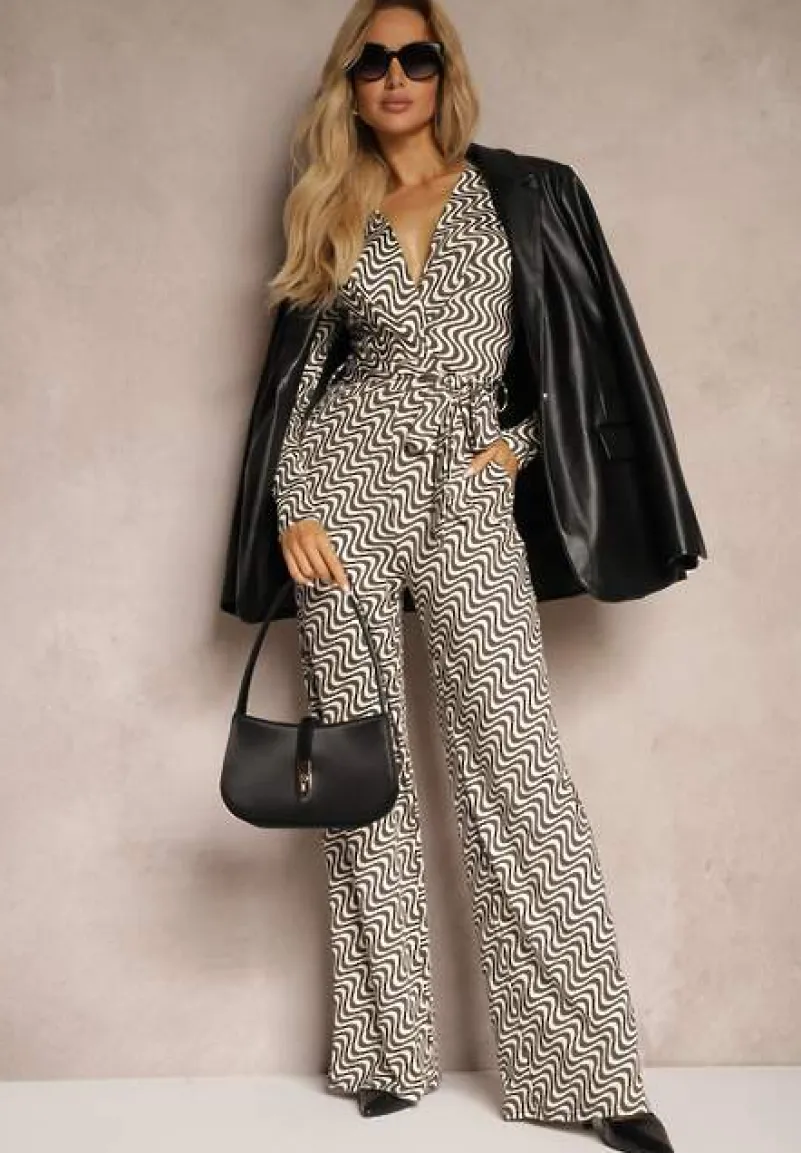 Przełam rutynę codziennych stylizacji z kombinezonem Nailaia, który przyciąga uwagę geometrycznym wzorem! Jego luźny krój zapewni komfort przez cały dzień, a elegancki pasek doskonale podkreśli talię, modelując sylwetkę. Długie rękawy i szerokie nogawki dodają mu uniwersalnego charakteru – idealnie sprawdzi się zarówno w biurze, jak i na wyjściu z przyjaciółkami. Delikatny kopertowy dekolt w kształcie litery V pozwoli na dyskretne wyeksponowanie biżuterii. W tym kombinezonie poczujesz się swobodnie i stylowo, zestawiając go z botkami na co dzień lub eleganckimi szpilkami na specjalne okazje.