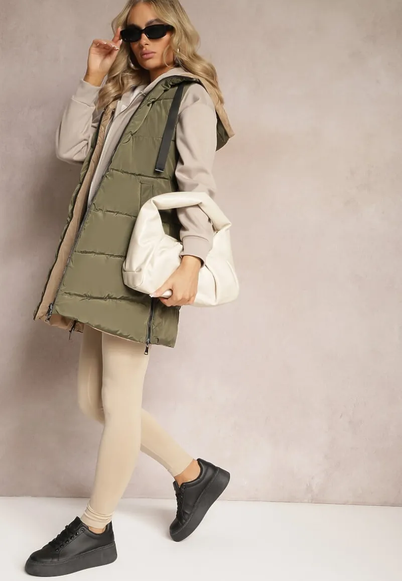 Dwustronna kamizelka z pikowaniem – must have w Twojej garderobie! Sznurki na kamizelce Frenila umieszczone w okolicach kaptura, pozwalają dostosować długość i sylwetkę kamizelki, co jest praktyczne i stylowe.