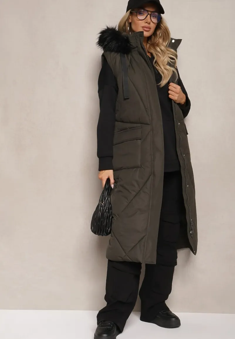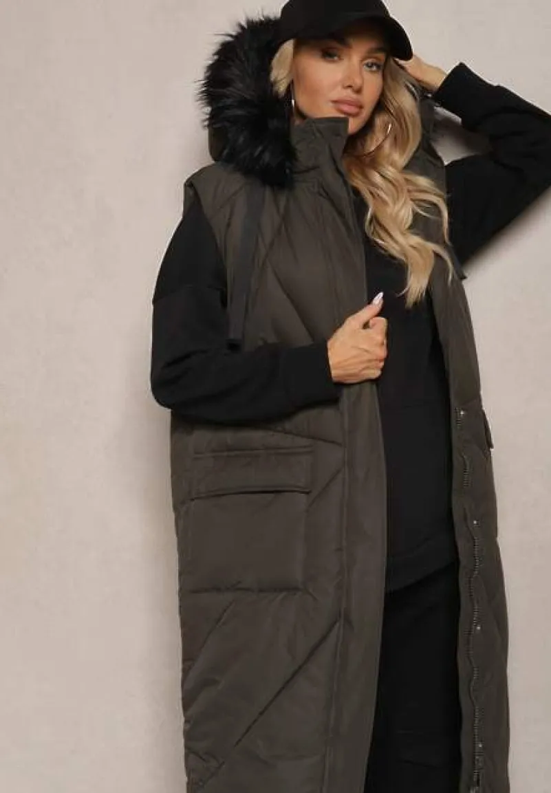 Długa kamizelka Avarilla na suwak z Kapturem to klucz do stylowych i zarazem ciepłych kreacji na nadchodzący sezon. Jej lekko pikowany materiał z kieszeniami na napy pięknie się układa, a futerko dodaje uroku i podkreśla stylowy charakter produktu. Idealnie wpisze się w casualowe zestawienia z białą koszulą i jeansami, tworząc look na co dzień, jak i świetnie sprawdzi się jako element wieczorowego outfitu z eleganckimi materiałowymi spodniami i szpilkami. Posiada kieszenie z klapami na napy.