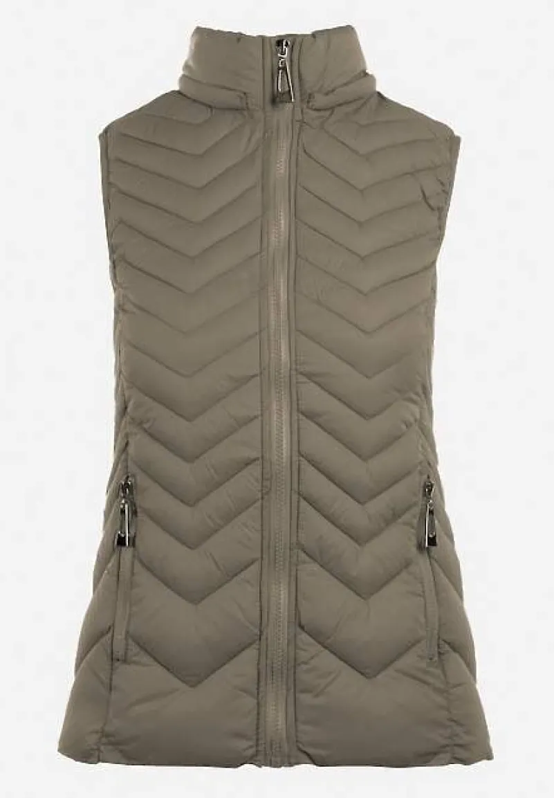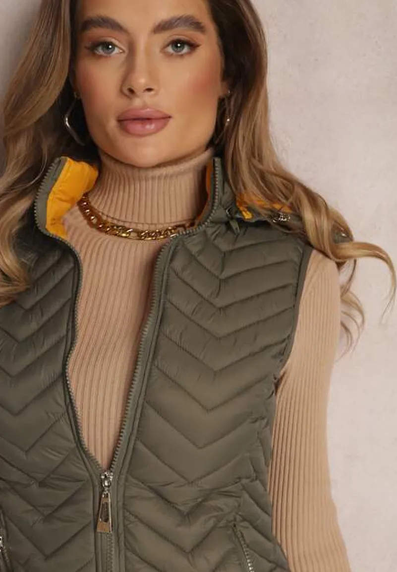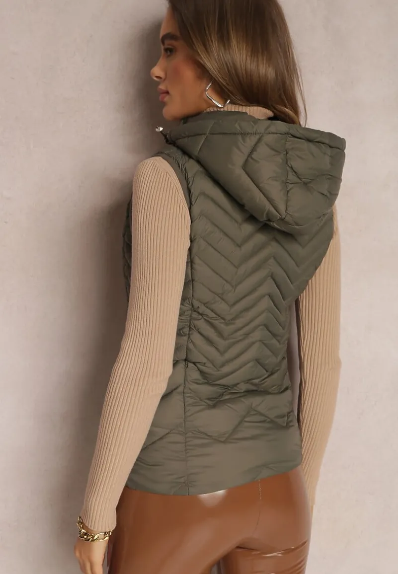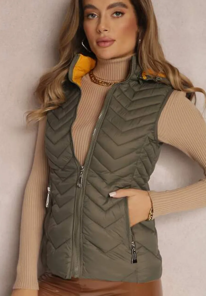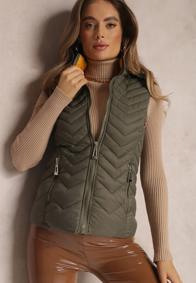 Kamizelka Phoebele pikowana. Przód zapinany na zamek błyskawiczny, z odpinanym kapturem, którego obwód możesz regulować. Po bokach zasuwane kieszenie. Pikowana kamizelka Phoebele rewelacyjnie sprawdzi się na wiosenne lub jesienne spacery oraz na co dzień!