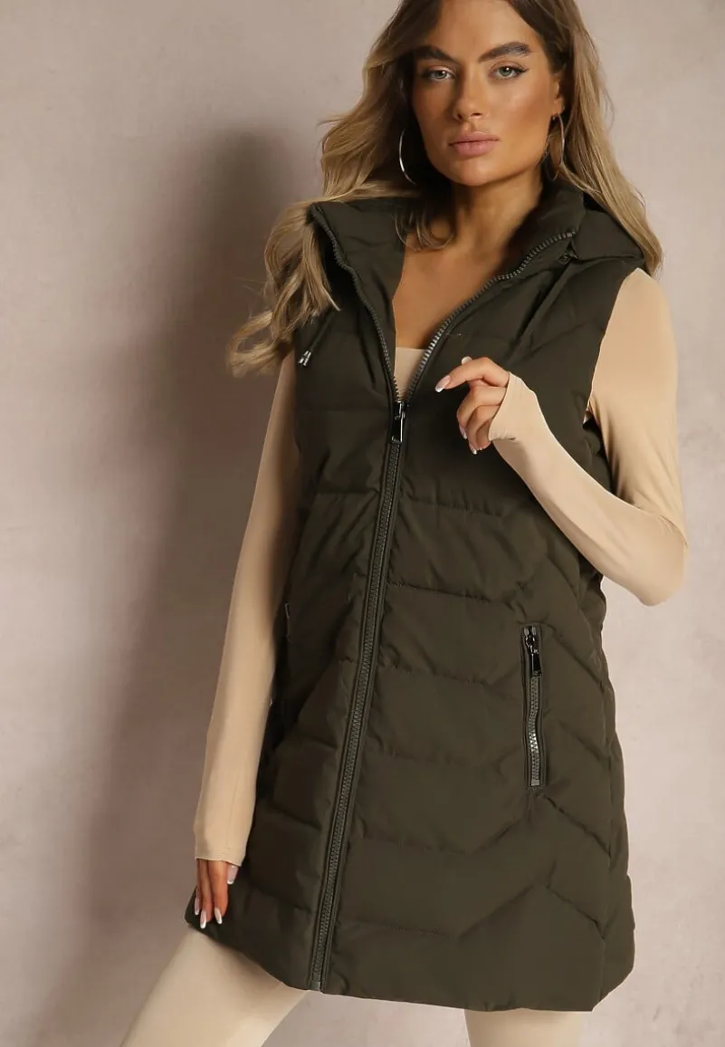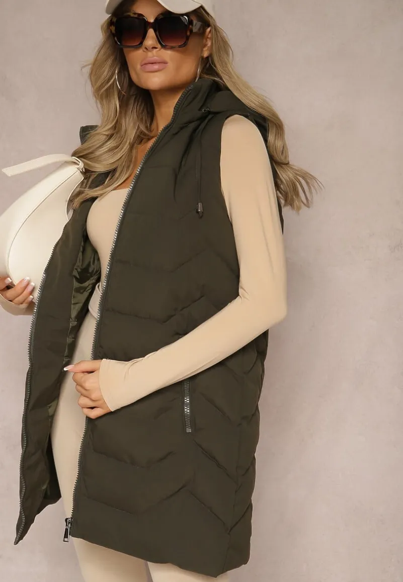 Kamizelka Pikowana Finaria doskonale wpisuje się w modowe kanony sezonu, stanowiąc kluczowy element miejskiego looku dla każdej modnej kobiety. Charakterystyczny pikowany fason z odpinanym kapturem i sznurkami sprawia, że będzie to twój ulubiony wybór na chłodniejsze dni. Linia kamizelki subtelnie podkreśla talię, a dostosowany krój zapewnia swobodę. Stylizując ją z dopasowanymi jeansami oraz sneakersami, zyskasz casualowy, ale niebanalny outfit na spotkania ze znajomymi, a dodając eleganckie botki i gładką koszulę, stworzysz zestaw idealny na bardziej formalne okazje.