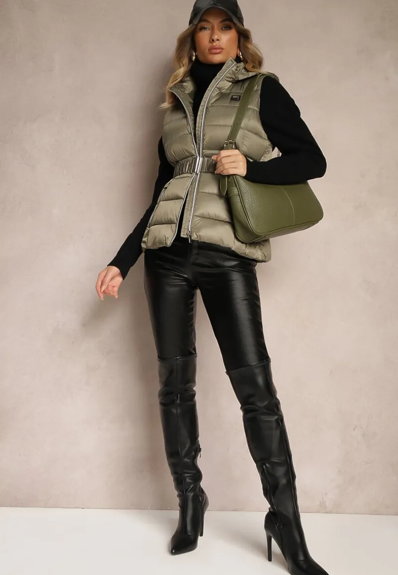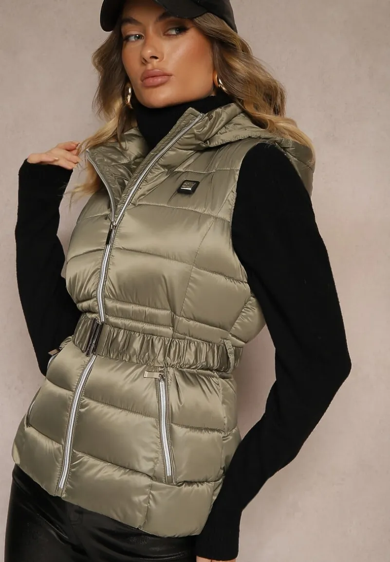 Kamizelka Inathria na suwak to idealny wybór dla dynamicznych kobiet, które w modzie szukają zarówno funkcjonalności, jak i oryginalnego stylu. Pikowany wzór z kieszeniami na suwak nadaje jej sportowego charakteru, a dodatki w postaci paska z marszczeniem pięknie akcentują talię, tworząc kobiecy fason. Z odpinanym kapturem świetnie sprawdzi się w chłodniejsze dni, zachowując modny wygląd. Doskonała do codziennych stylizacji z jeansami i trampkami, ale także jako nietuzinkowe uzupełnienie eleganckiej sukienki i botków na obcasie na wieczorne wyjście.