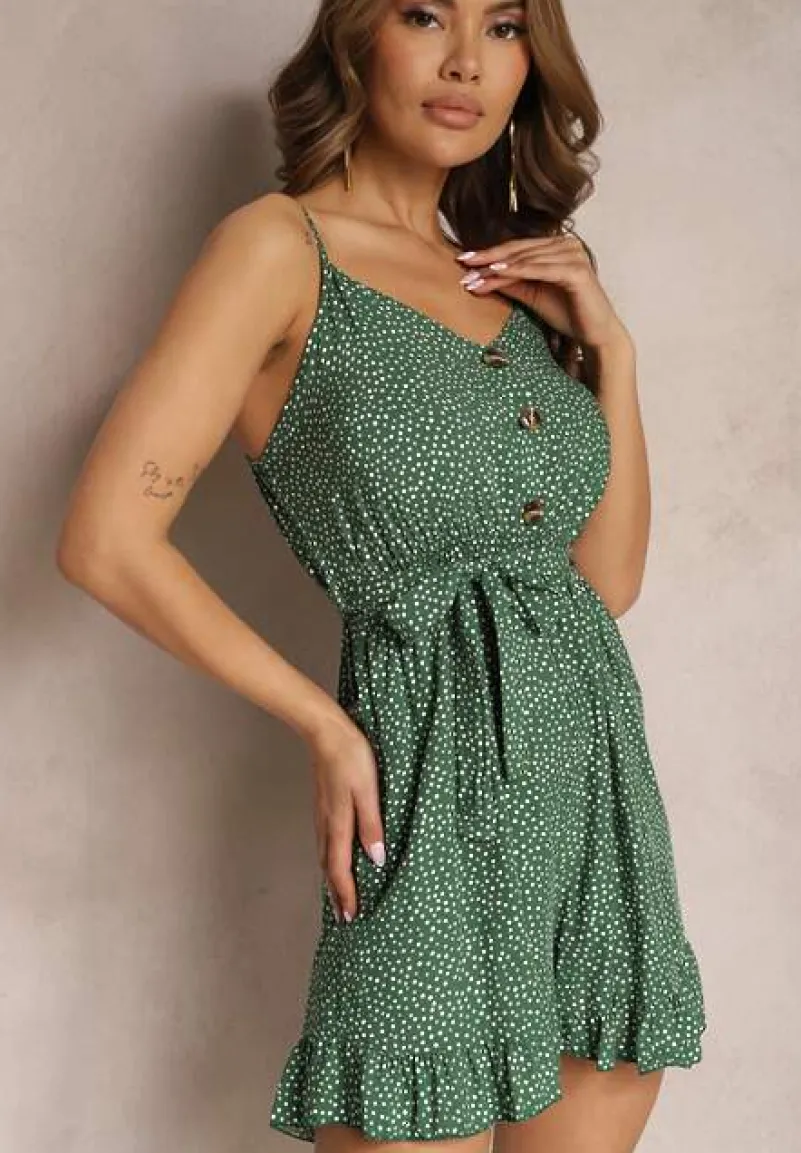 Ciemnozielony Kombinezon z Bawełny na Regulowanych Ramiączkach z Paskiem i Gumką w Talii Belladream