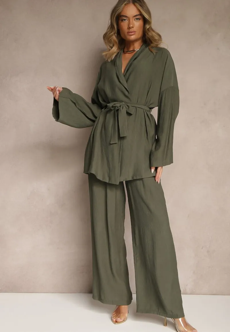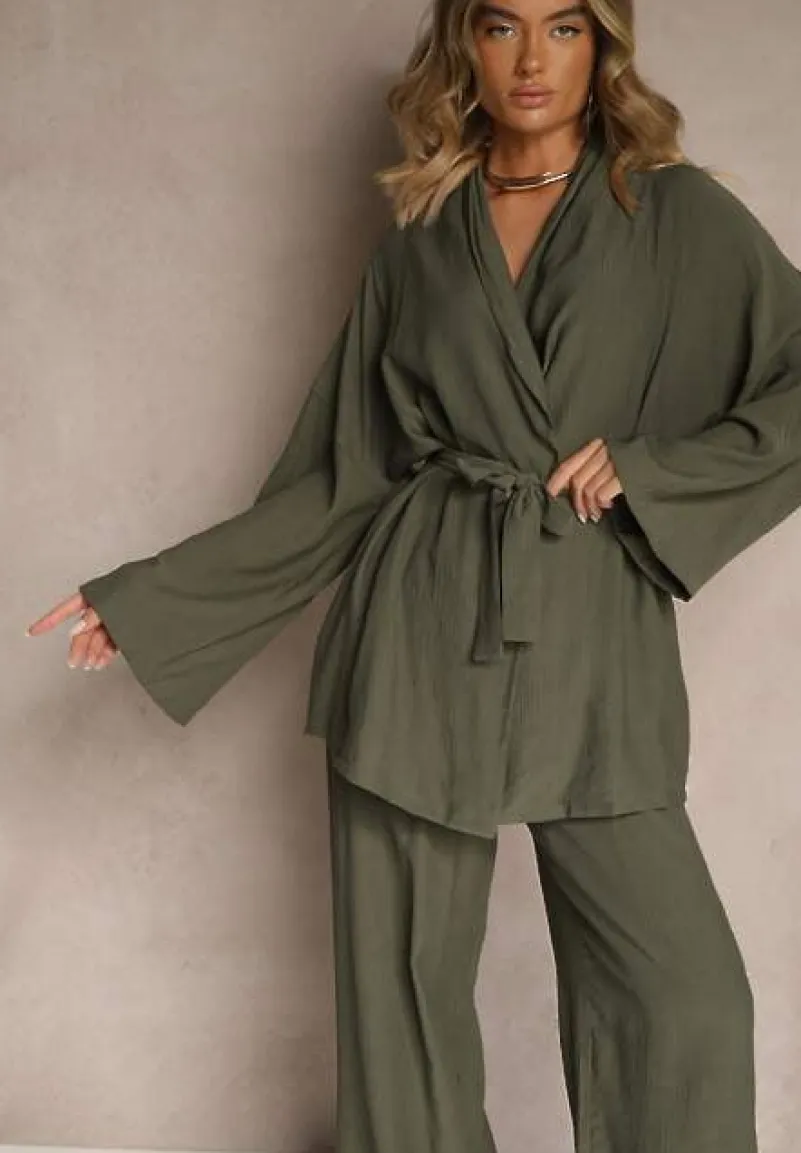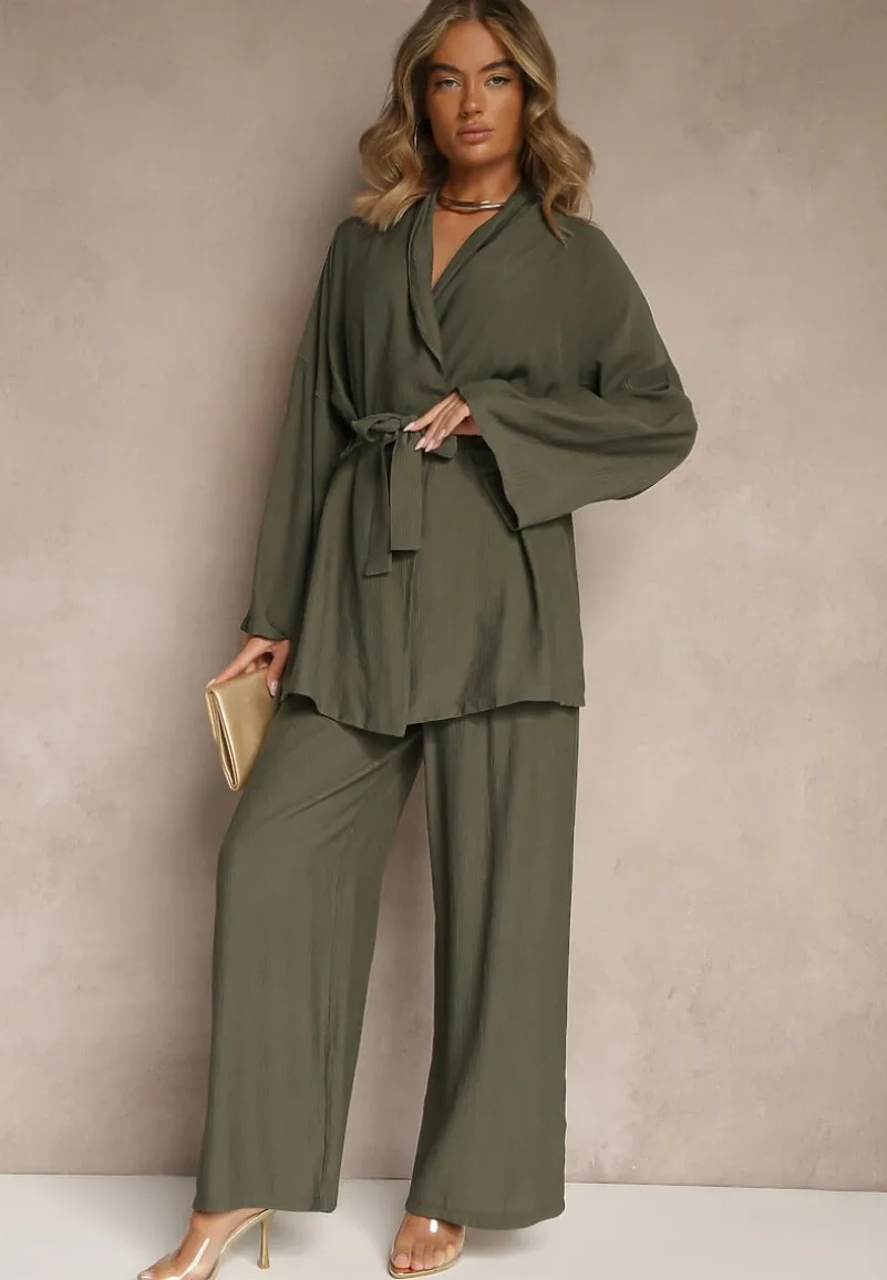 Odkryj ponadczasową klasykę z odrobiną nonszalancji w postaci kompletu Livelia – niezwykle eleganckim zestawem, który skradnie serce każdej modowej entuzjastki. Spodnie o szerokim kroju z gumką w pasie i wsuwanymi kieszeniami oraz bluzka z wiązaniem nie tylko oferują wyjątkowy design, ale także komfort noszenia. Idealny na ciepłe dni, ten zestaw sprawdzi się zarówno na co dzień — w połączeniu z mulami i torebką shopperką, jak i na formalne okazje, zestawiony ze szpilkami i minimalistyczną biżuterią. Postaw na komplet Livelia i zapewnij sobie modny wygląd w każdej sytuacji!