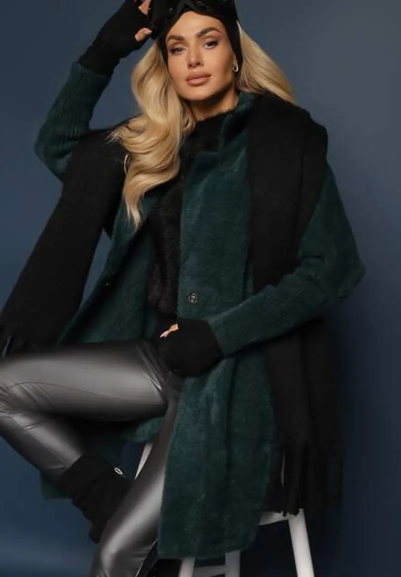 Płaszcz Brumisia zapinany z przodu na zatrzask. Wykonany z bawełną. Zapewni Ci piękny wygląd oraz ciepło. Po bokach wyposażony we wsuwane kieszenie. Przy szyi wywinięty kołnierz. Długie rękawy zakończone prążkowanym ściągaczem. Płaszcz Brumisia perfekcyjnie dopełni Twoje jesienno-zimowe stylizacje!