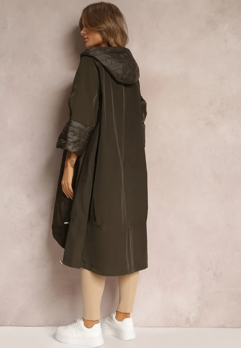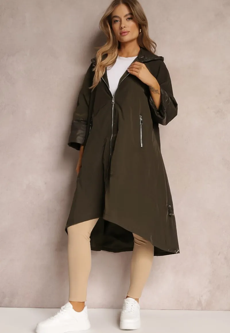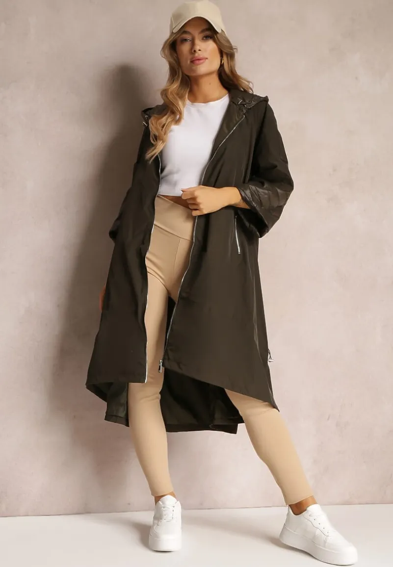 Płaszcz Kemiah z kapturem i dłuższym tyłem. Model o rozkloszowanym fasonie ze ściągaczami i stoperami na dole. Zapinany na zamek błyskawiczny, tak jak i boczne kieszenie. Rękawy mają długość 3/4. Modny płaszcz Kemiah świetnie pasuje zarówno do botków, jak i sneakersów.