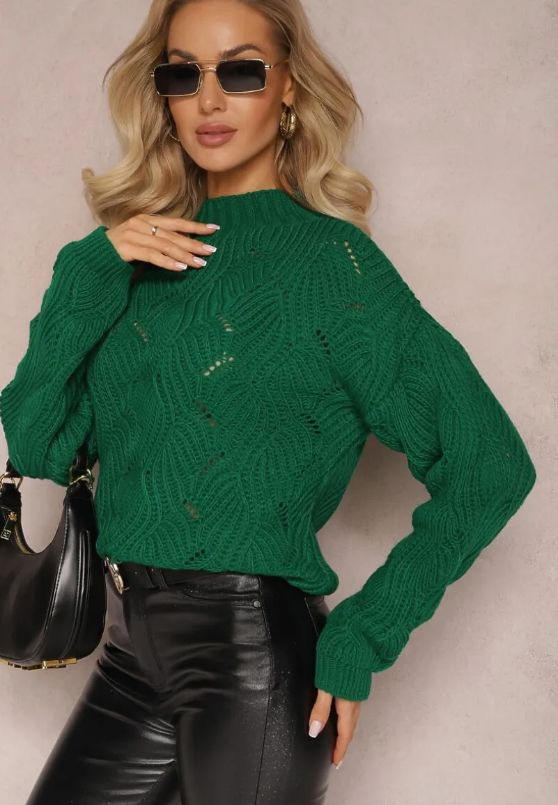 Subtelny sweter z ażurowym wzorem i ozdobnym splotem to doskonały wybór dla kobiet ceniących połączenie delikatności z kobiecym stylem!