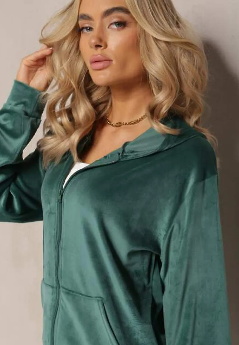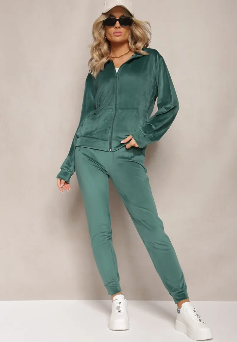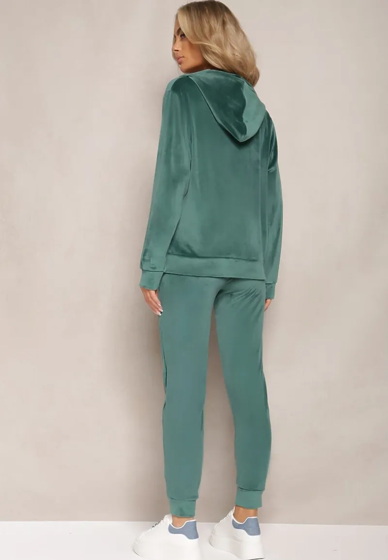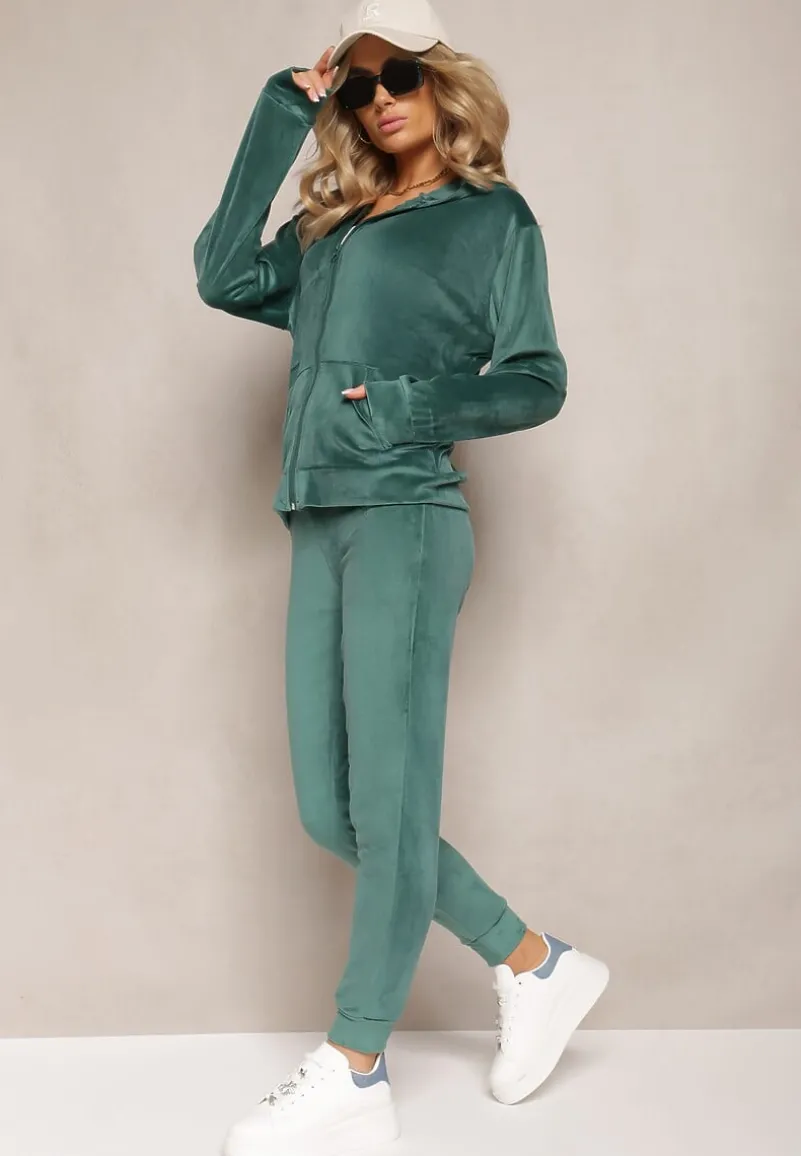 Komplet Dresowy Arislo z welurowej dzianiny, składa się z bluzy z kapturem i prostych spodni. Bluza i spodnie posiadają wsuwane kieszonki. Idealny do Twoich ulubionych sneakersów!
