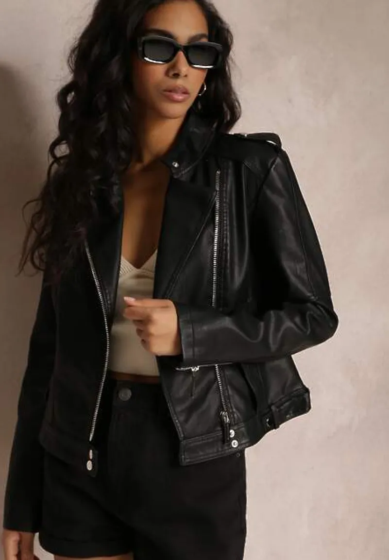 Ramoneska Comena z asymetrycznym zamkiem błyskawicznym. Posiada stójkę oraz dekoracyjne napy na ramionach i wsuwane kieszenie.