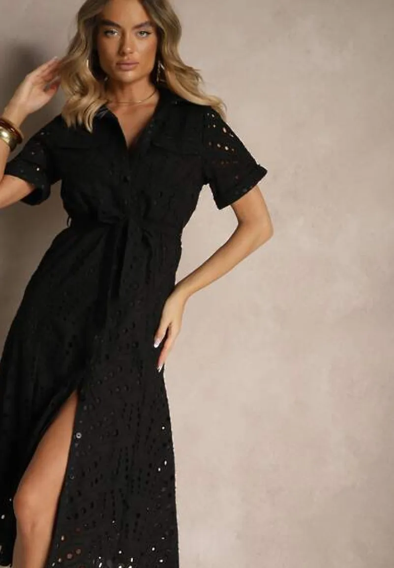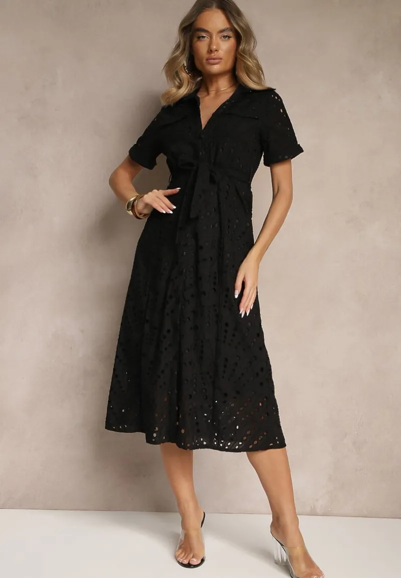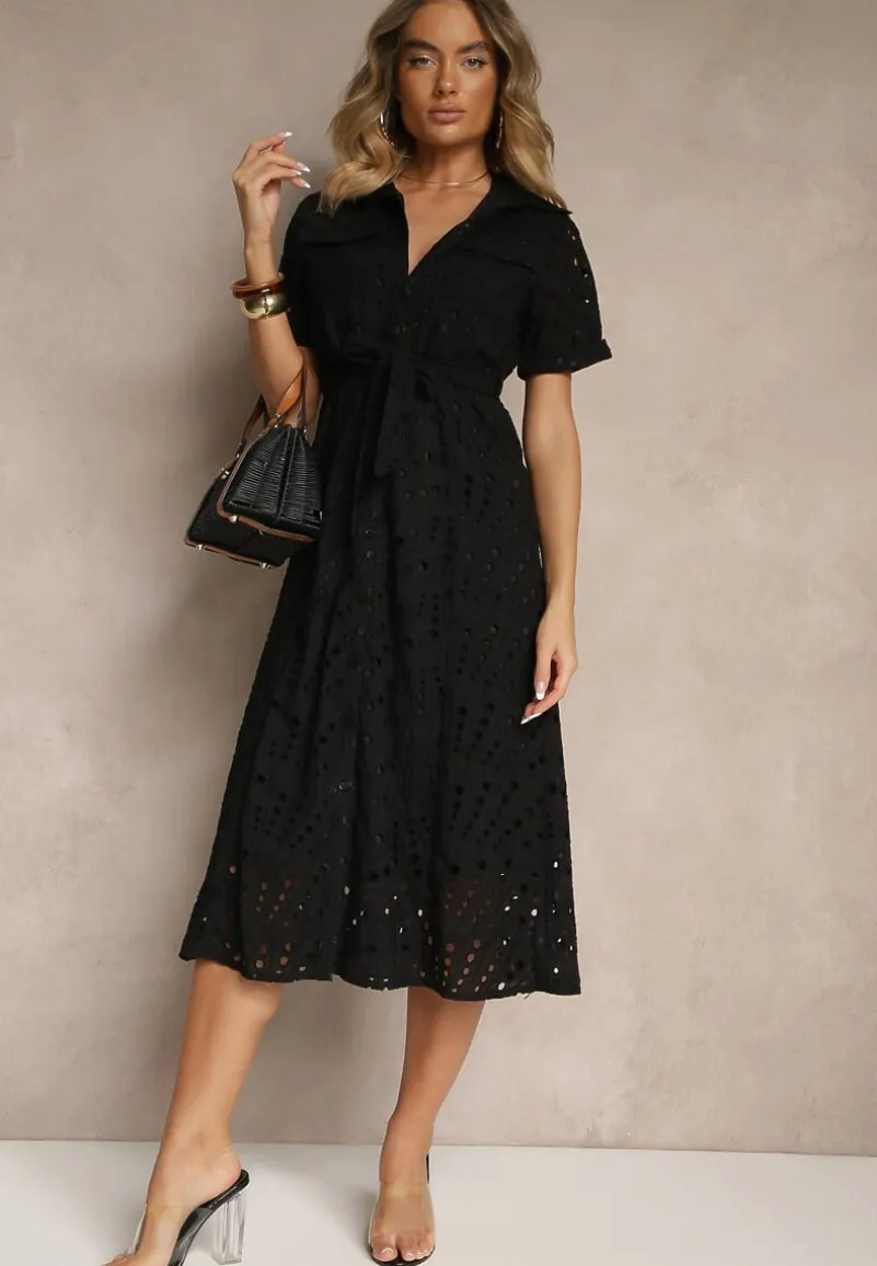 Odkryj magię ażurowej sukienki koszulowej Rinailia, która jest idealnym wyborem na każdą okazję. Jej fason na guziki, z naszytymi kieszeniami i kołnierzykiem świetnie podkreśla kobiecą sylwetkę, a pas w talii dodaje charakteru i wyjątkowości. Połącz ją z sandałami na obcasie i biżuterią na formalne wyjścia, lub zestaw z trampkami i oversize’ową torebką na weekendowe spotkania z przyjaciółmi!