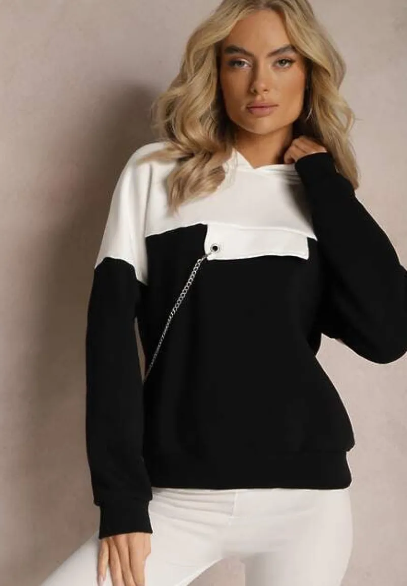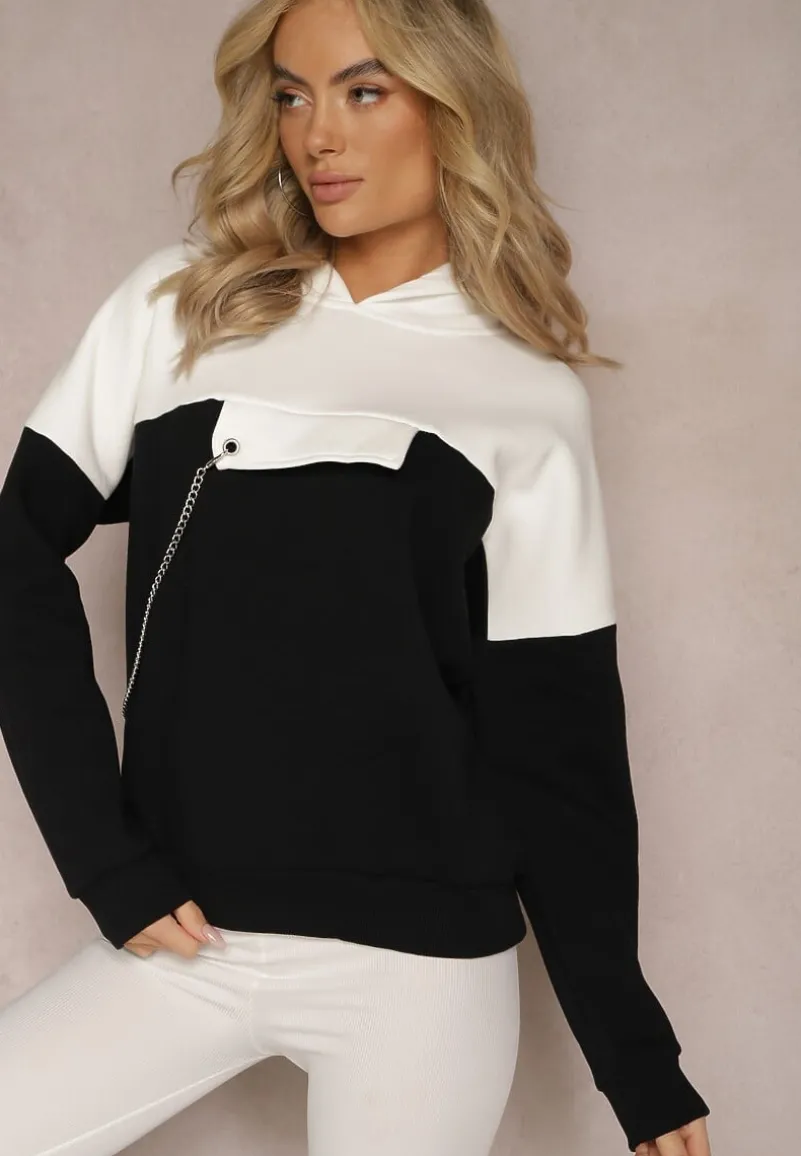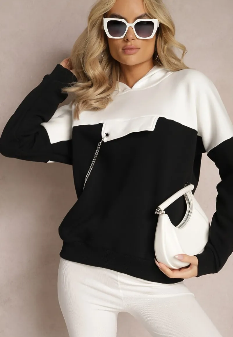Bluza Ambriella z kapturem, wykończona od środka polarem. Z przodu ozdobna klapa z odpinanym łańcuszkiem. Model wykonany z bawełnianej tkaniny.