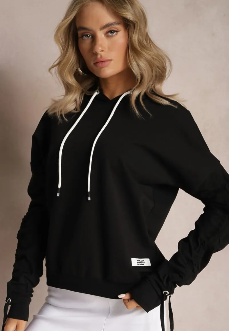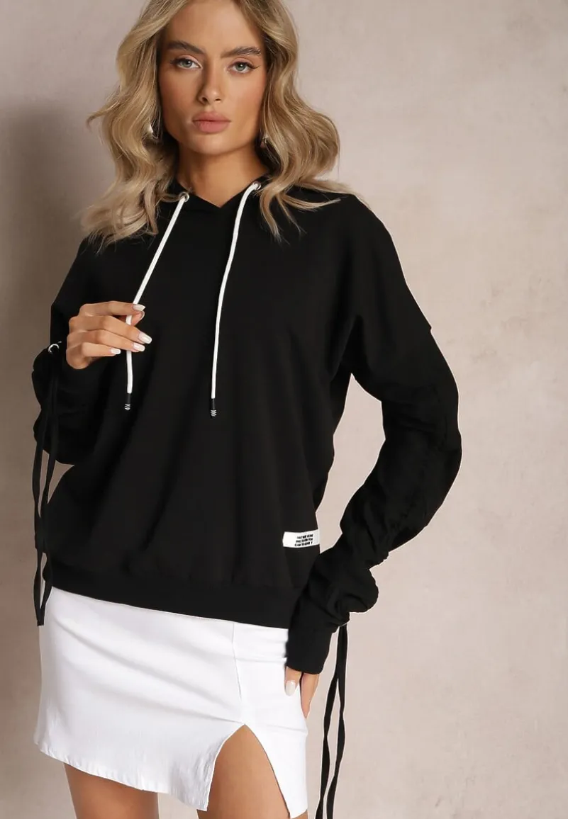 Bluza Dolcean z kapturem, zakładana przez głowę. Wykonana z bawełnianej tkaniny. Długie rękawy ściągane wzdłuż troczkiem.