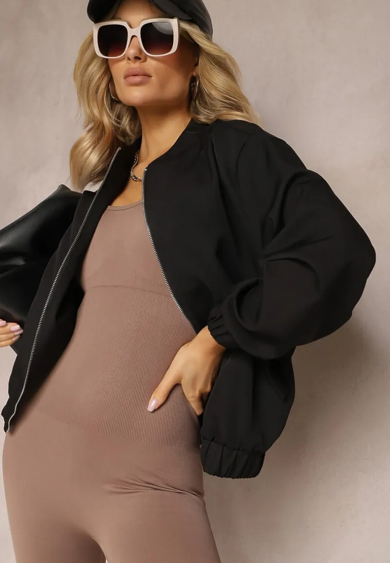 Bluza Typu Bomberka zapinana na suwak, posiada charakterystyczne ściągacze oraz kieszenie na klapki. Bomberka damska z linii plus size dostępna w większych rozmiarach.