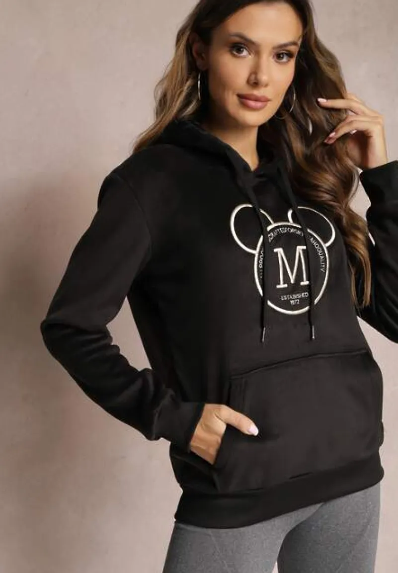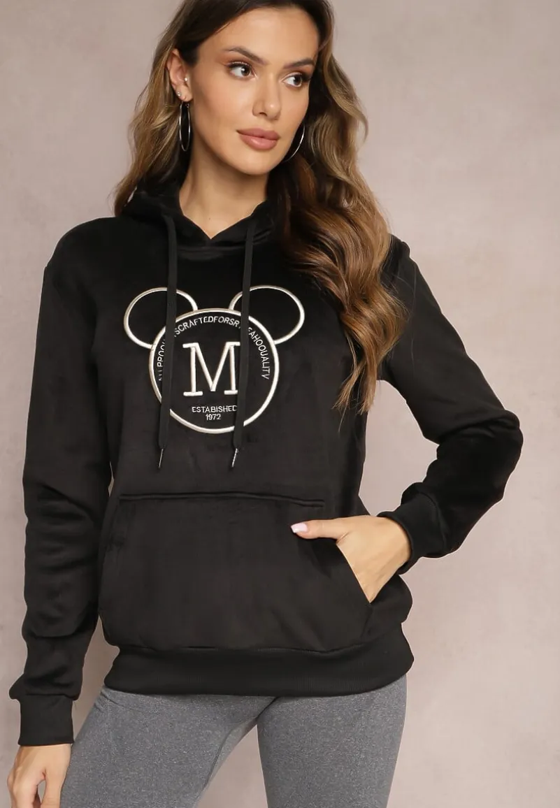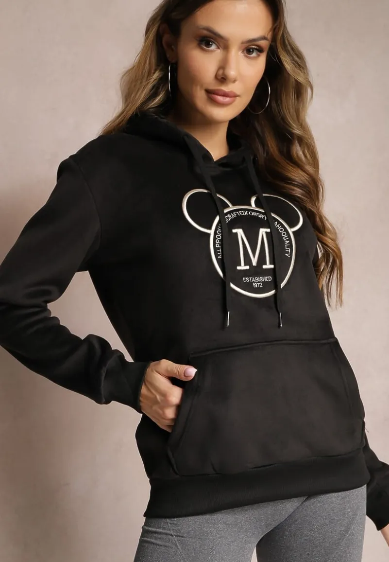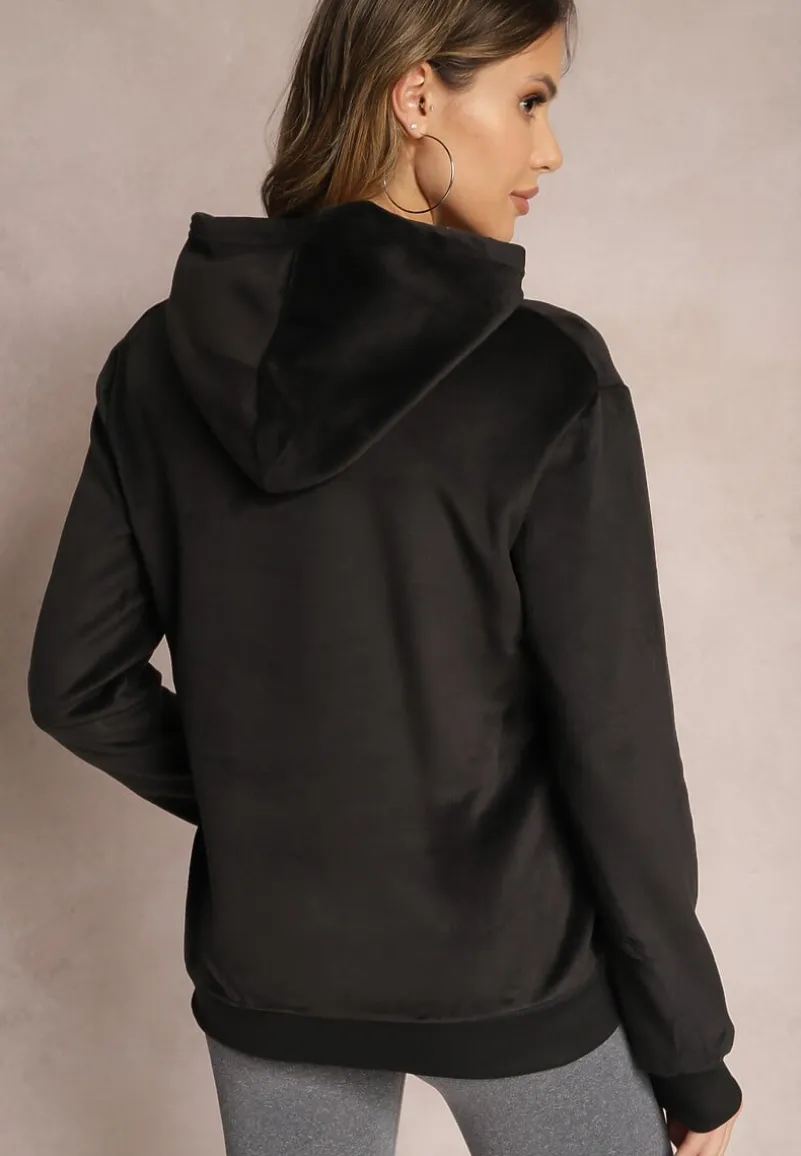 Bluza Lahma z kapturem i haftowanym nadrukiem z przodu. Kangurowa kieszeń. Model wykonany z welurowej tkaniny oraz wykończony polarem.
