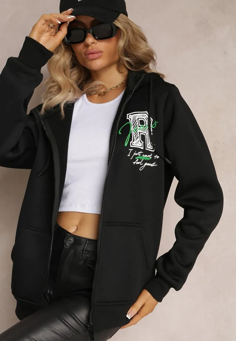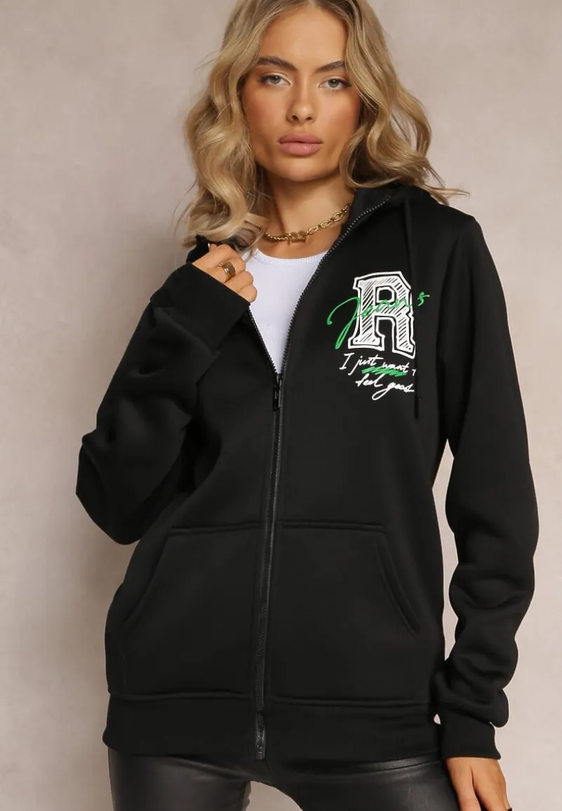 Bluza Sewan z kapturem, zasuwana na zamek błyskawiczny z przodu. Na wysokości pasa wsuwane kieszenie. Wykończona polarem. Z przodu zdobiona nadrukiem, dodatkowo posiada kangurową kieszeń.
